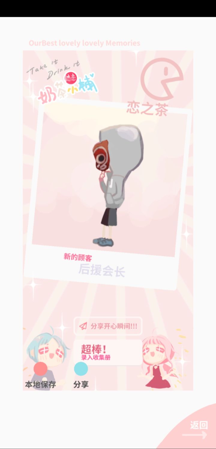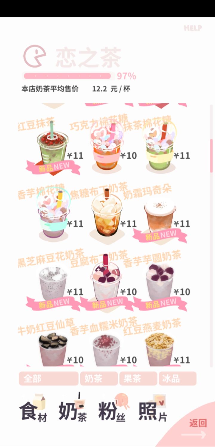 全部奶茶 全部客人get√昨天奶茶就齐了,等解锁那个神秘客人多等了一天,今天终于,肝完了。太累了,别问营销等级怎么只有这么点,问就是没钱营销呜呜,我哪有钱营销啊呜呜,我的小破奶茶摊都不赚钱!!哭了(忽略掉我取的名字,取名字太难了,后面根本想不出来,我不配