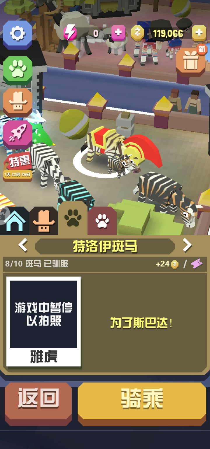 每个地图连续(很重要)换乘七只动物,就会有特定动物出现!稀树草原:特洛伊斑马丛林:恐龙犀牛山脉:纯黑鹿澳洲:变色驼极地:仙女企鹅还等什么!快去抓呀!!😉