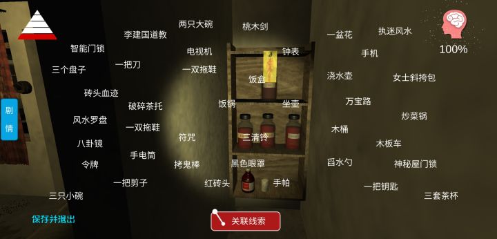 李家小院游戏攻略大全第一把钥匙在大厅画卷下方,第二把钥匙在监控室日记本旁边门卡在桃木剑附近的缸中,点击盖子打开风水罗盘+八卦镜=执迷风水三只小碗+三个盘子+两只大碗+三套茶杯=一家三口红砖头+半支烟+手电筒=张洛帮李建国令牌+符咒+拷鬼棒+三清铃+桃木剑=李建国道教破碎茶托+木桶+坐壶=陈一楠追刘美玲木板车+砖头血迹+一双拖鞋(蓝色)+手机=陈一楠失踪卧室摄像头+监控屏幕=房东偷窥