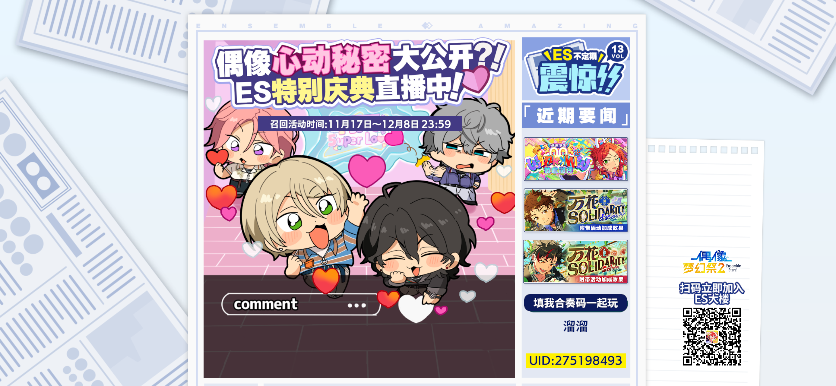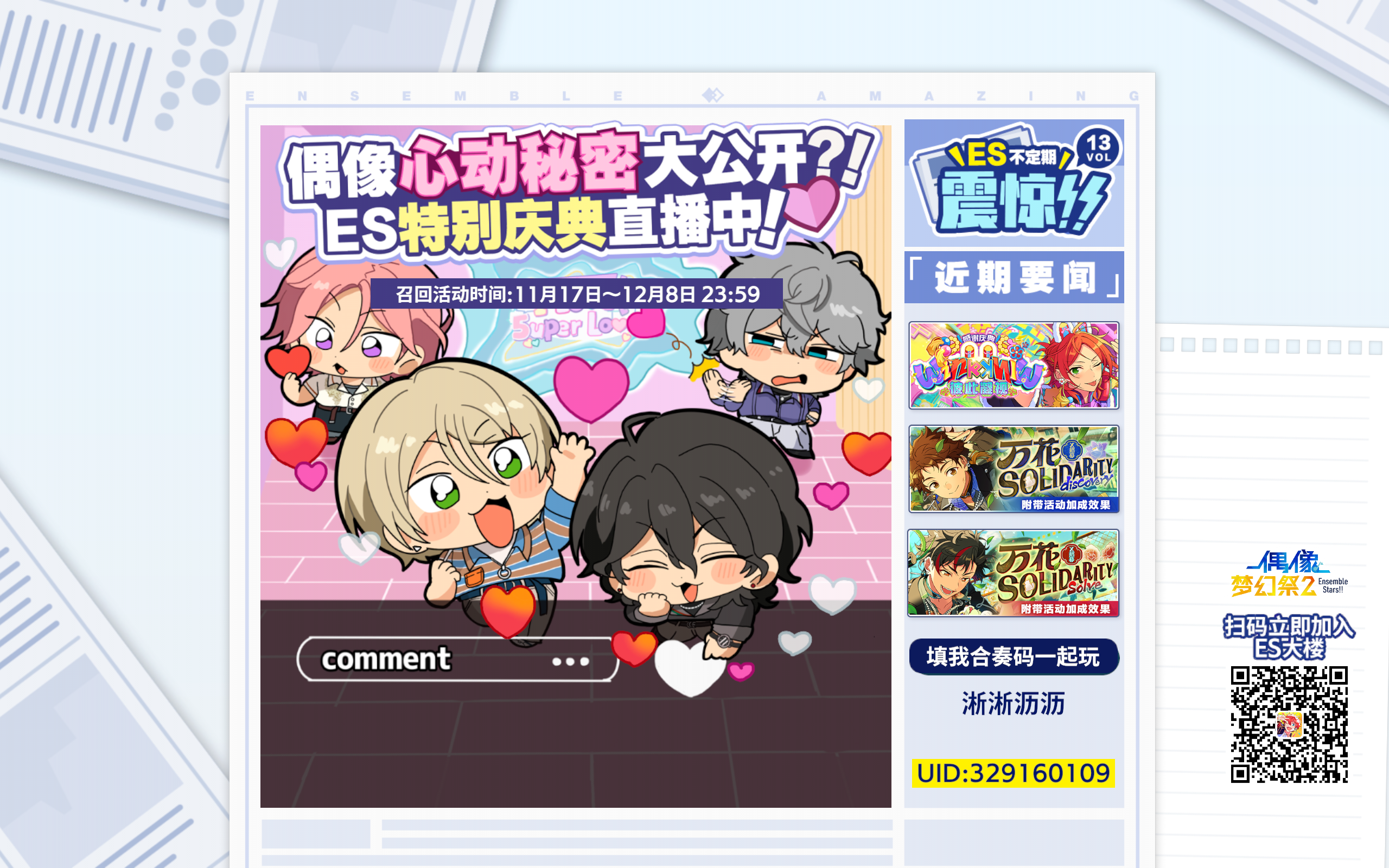 #偶像梦幻祭2# ES特别纪念庆典已开启,偶像们的心动要素究竟有哪些?这份爱意又能否传达给你?……戳https://es2.happyelements.cn,了解更多ES要闻趣事。