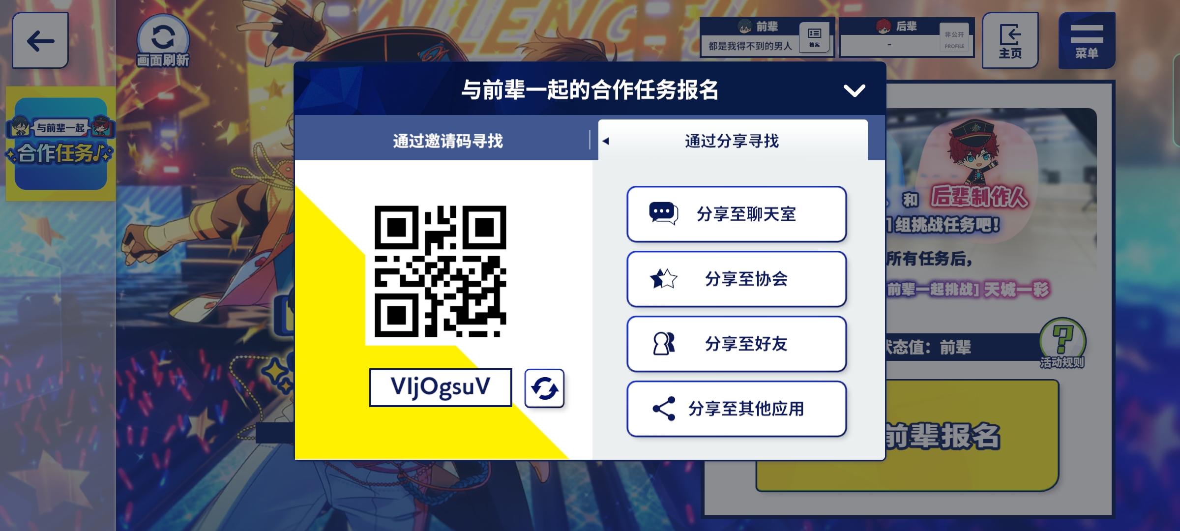 咸鱼佛系前辈求一个后辈一起做任务啊,蹲蹲~可以直接游戏内扫我的码,也可以私信我。本人自闭社恐患者,不强求社交,谢谢好心的后辈啦~