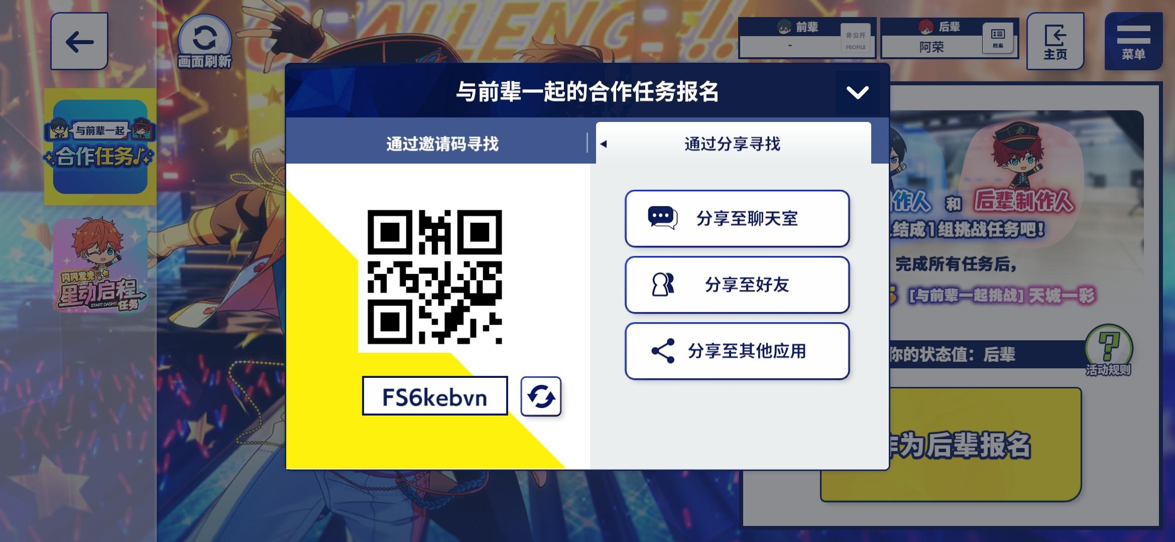 找个前辈,刚玩不太会,尽力做任务。