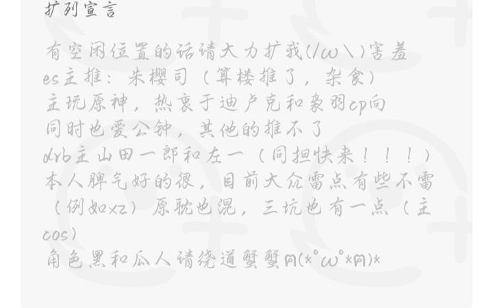 扩点es妈咪!!可以叫我启光!!糖醋鲤鱼激推➕全员推希望可以一起打歌!!!高二住宿狗所以周六周天有时间!空间点赞人,偶尔互动,欢迎扩列!!!Q:1066387815