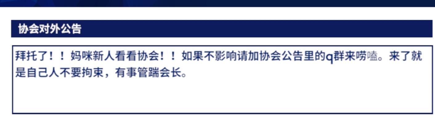 拜托了!如果有长期在线肝游或者能抽时间打协会任务和联合共演的妈咪愿意进协会帮忙的我万分感谢!协会等级低没几个人真的急需新鲜血液帮忙带动一下!门槛只有15,如果等不急来加也行直接敲我 504987949谢谢妈咪们