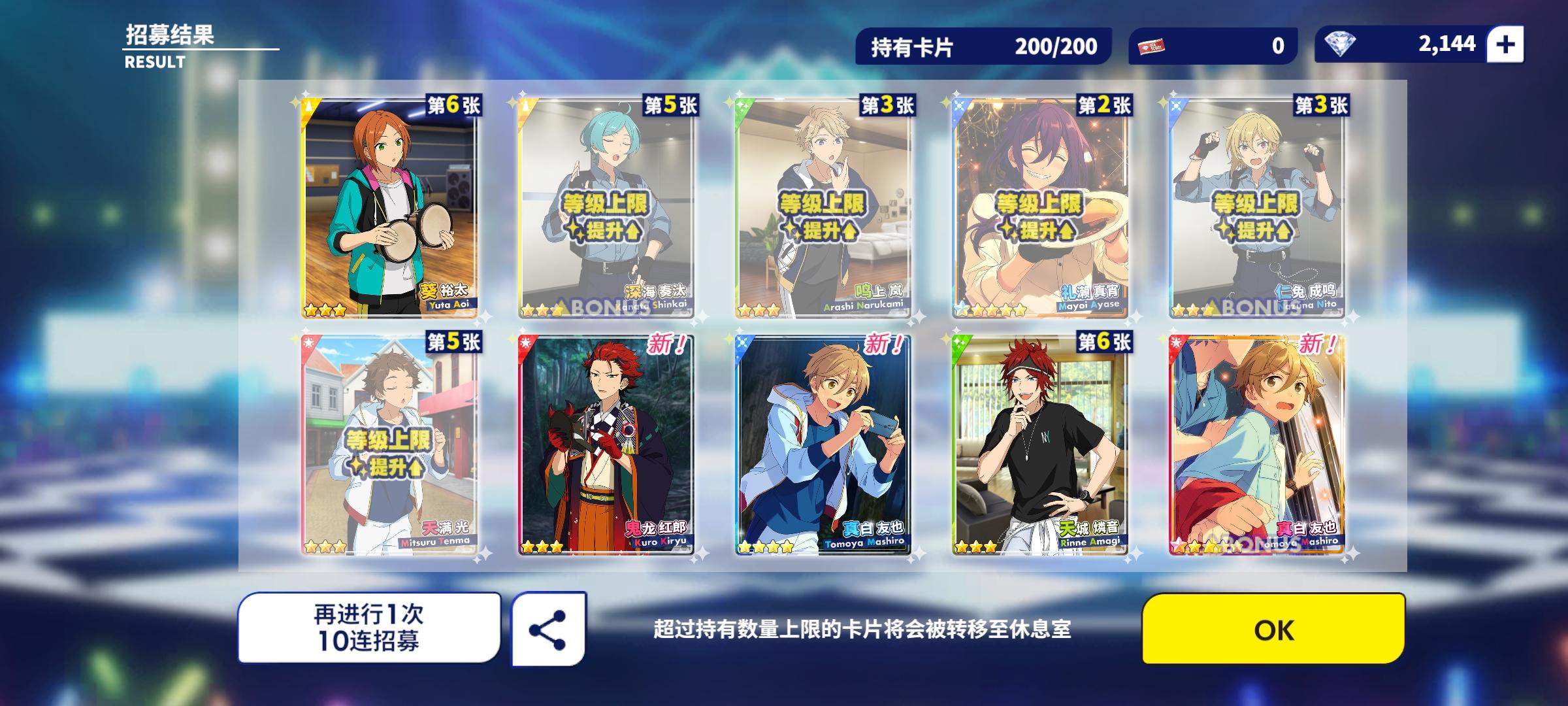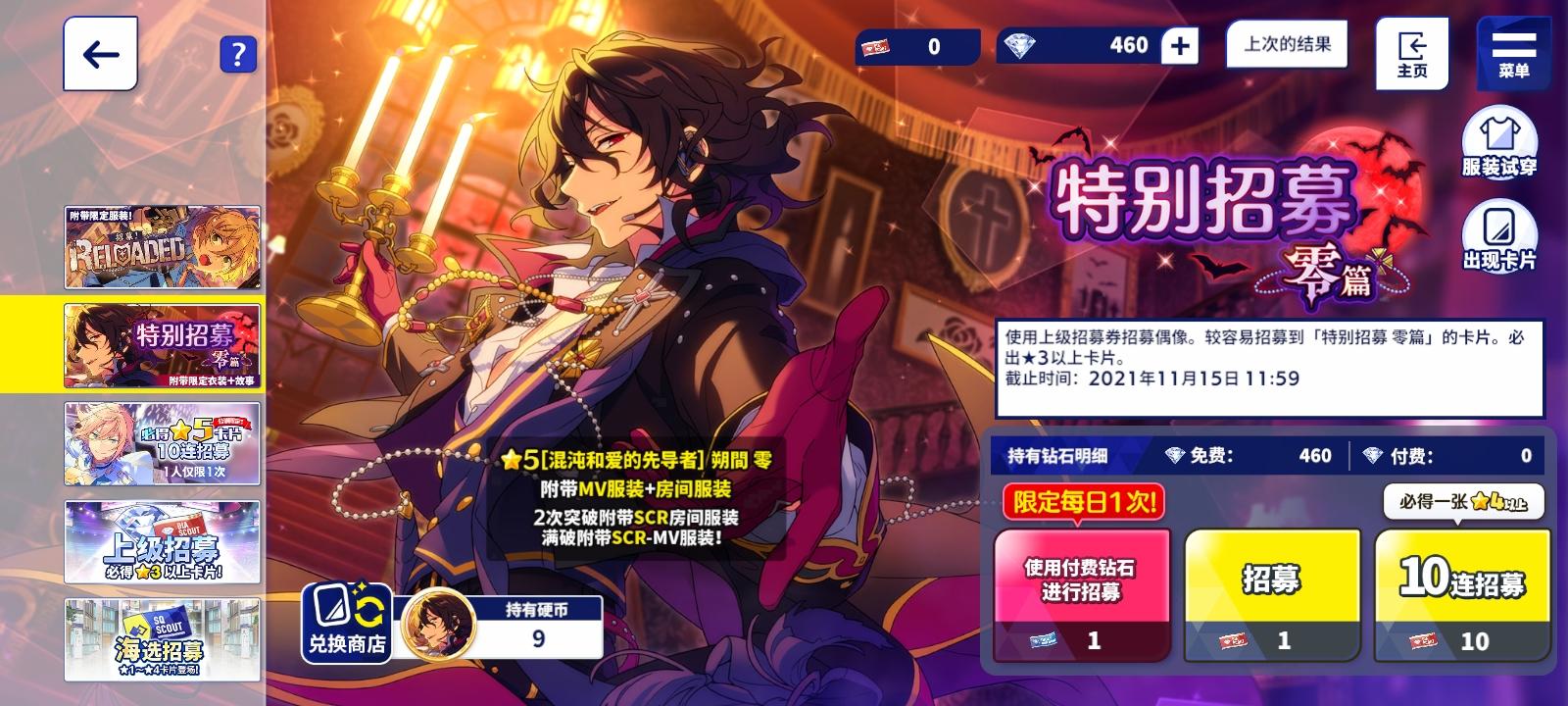 傻眼,这个池也是一发就抽到了,但是零的吃我抽九次歪了个凛月呜(虽然也香)
