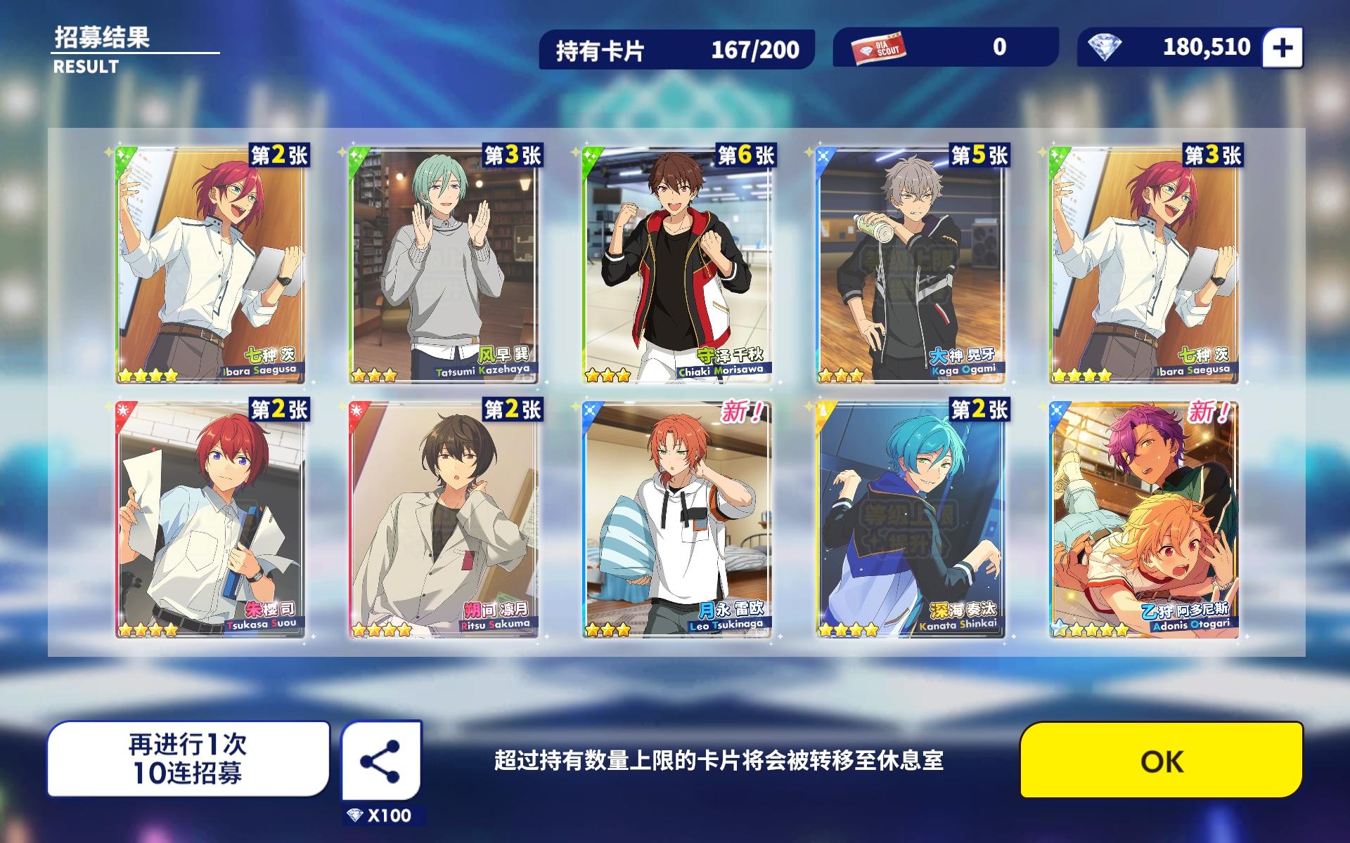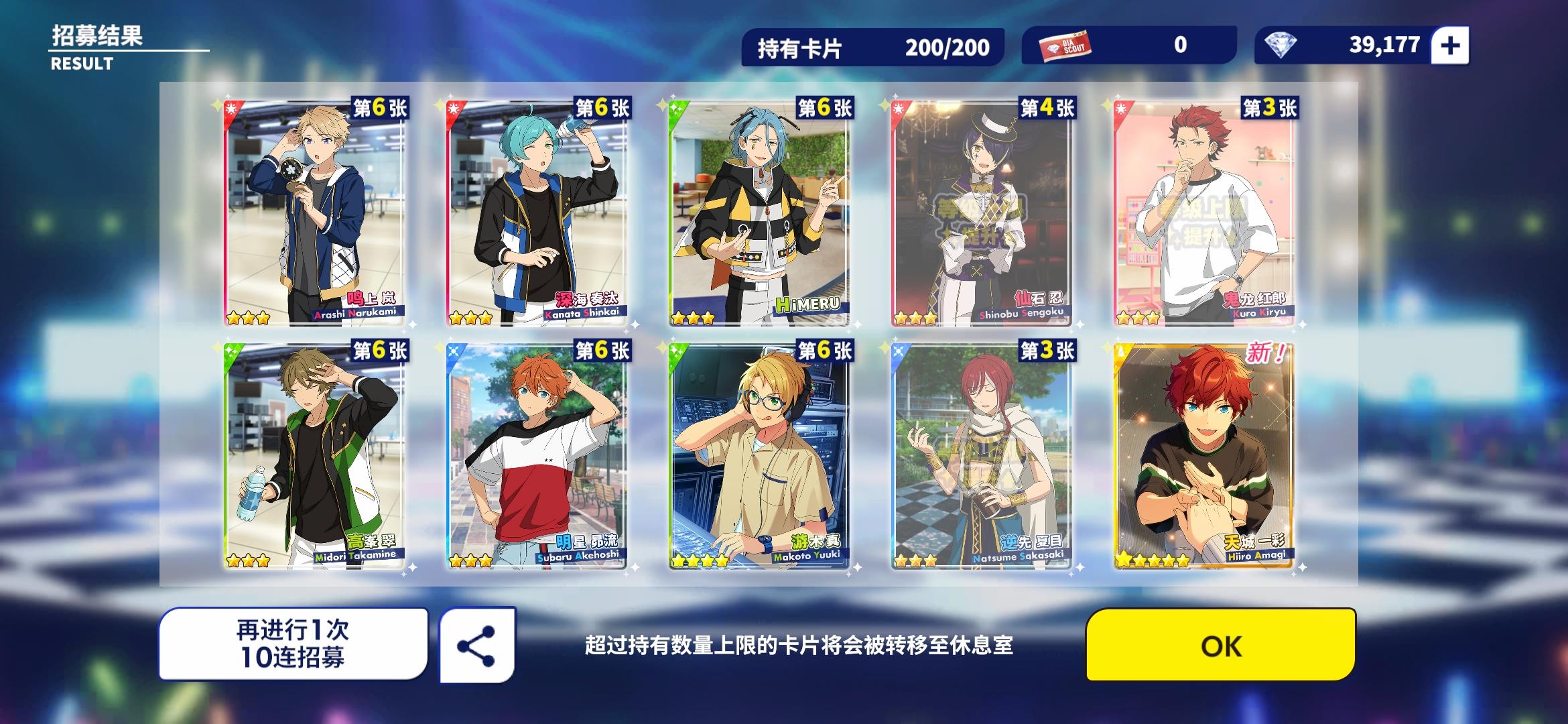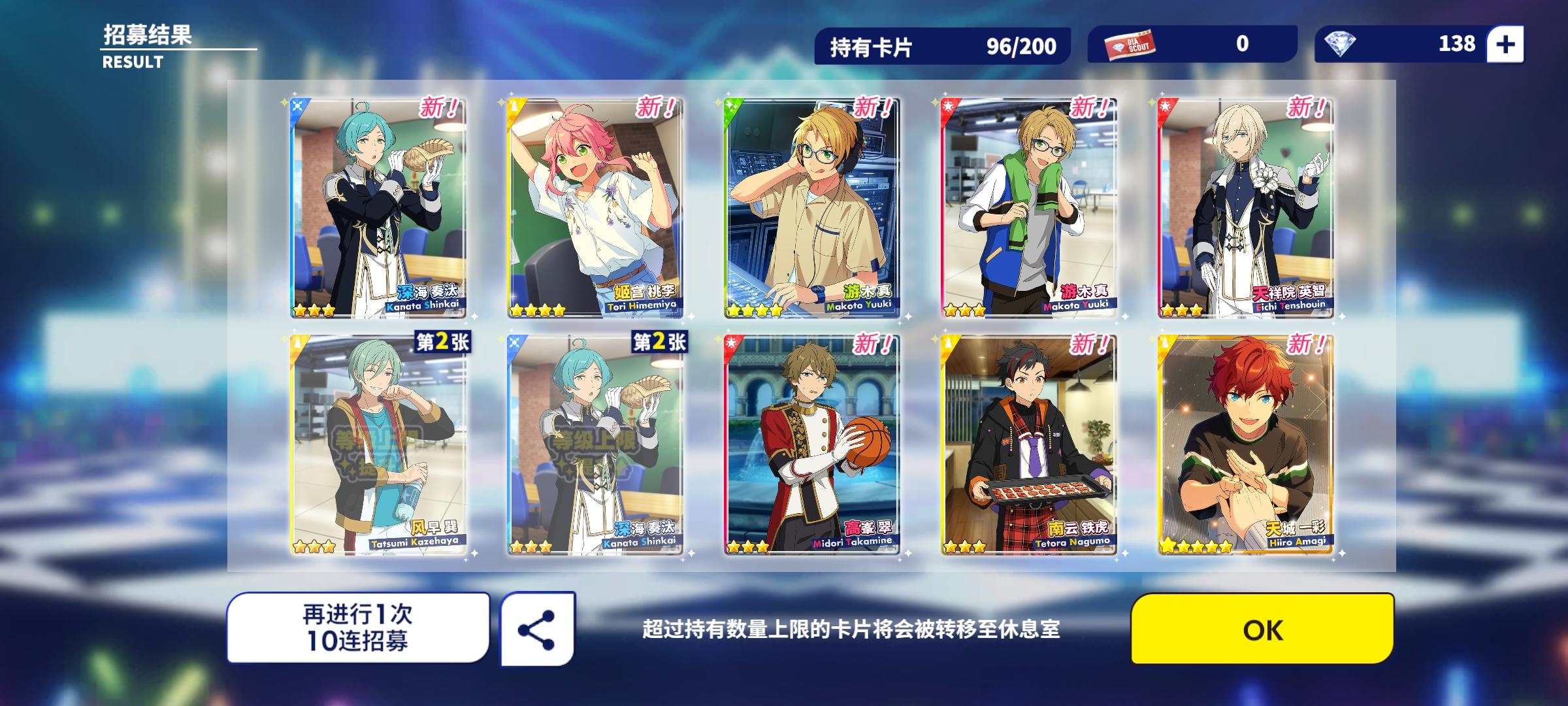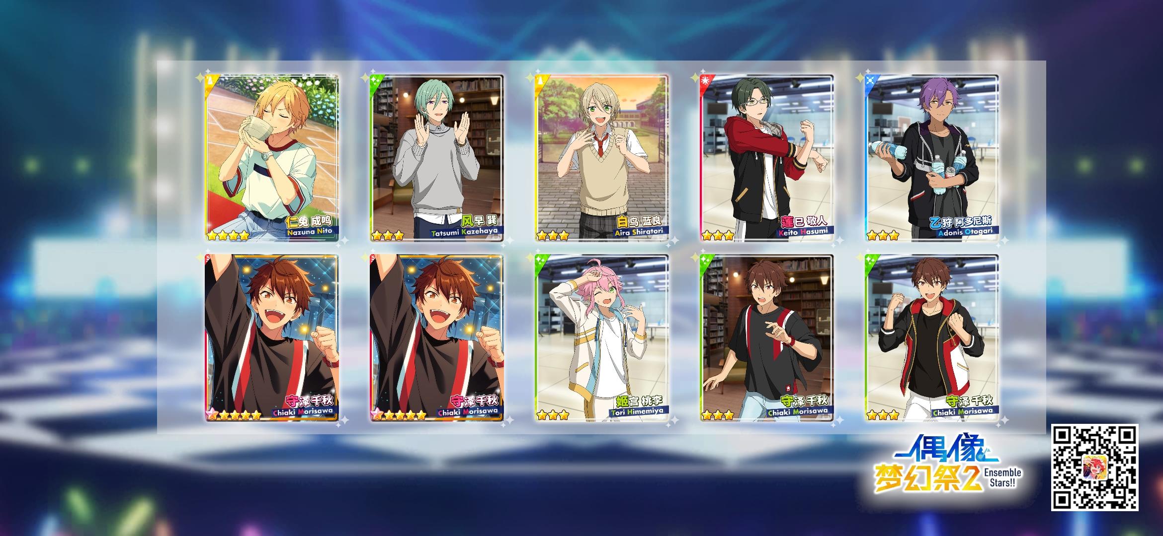 千秋这么给力吗?!!!第一次十连就出来两张五星,呜呜呜呜呜孩子第一次十连双彩,虽然是基本卡,但是我get到千秋的爱啦!!!!(失智)