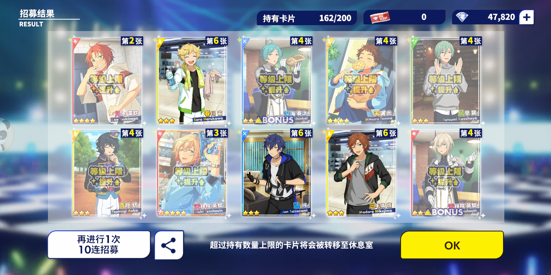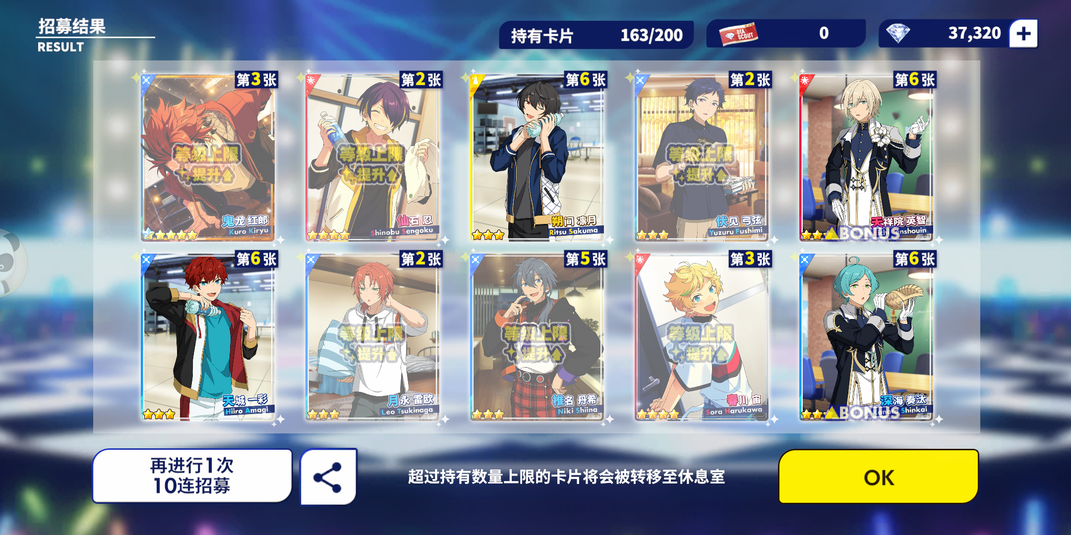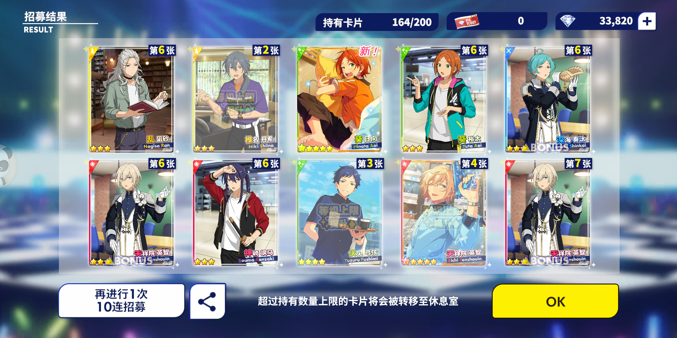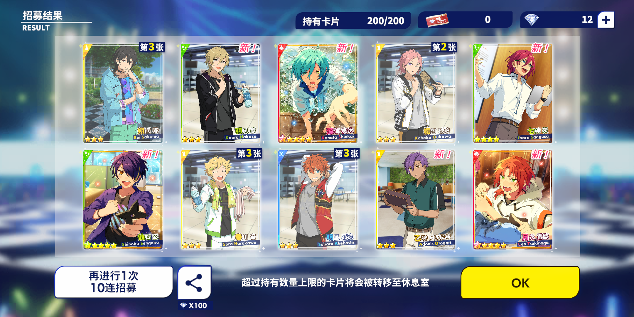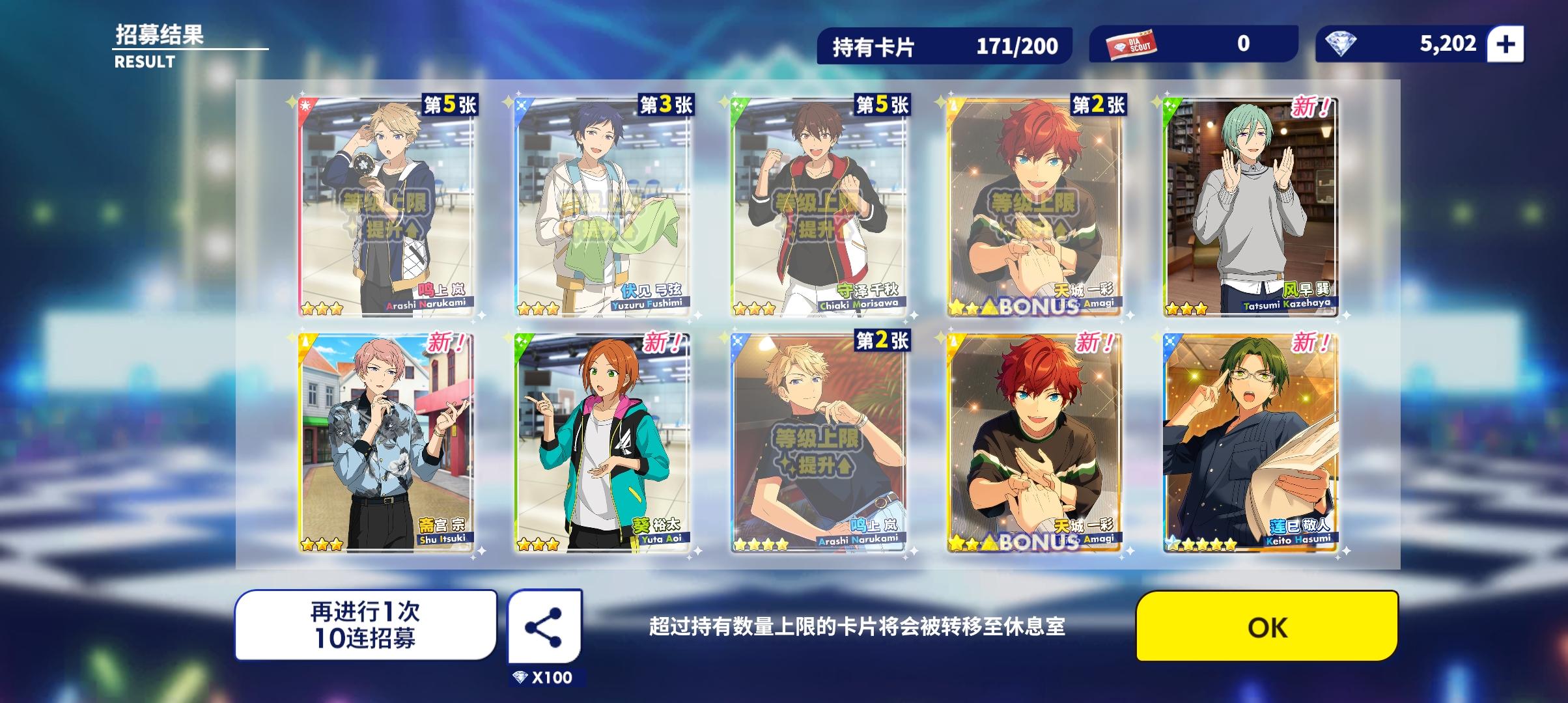 千秋这么给力吗?!!!第一次十连就出来两张五星,呜呜呜呜呜孩子第一次十连双彩,虽然是基本卡,但是我get到千秋的爱啦!!!!(失智)