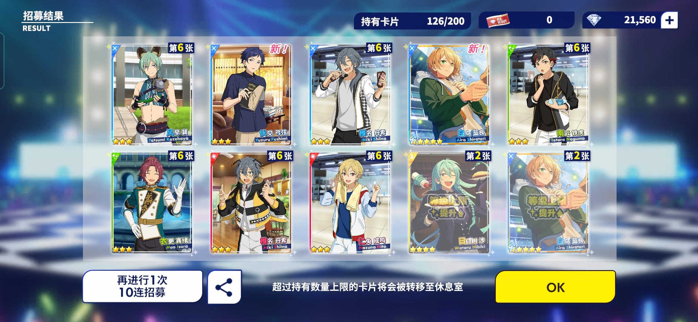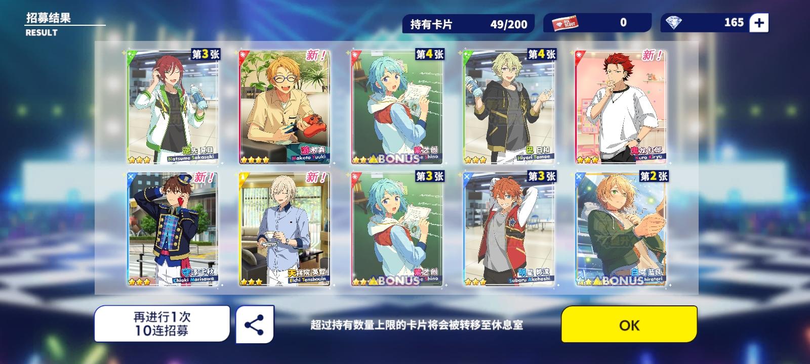 回归的我有被惊到。十连就出了。本来就是想随便抽一抽。就出了。谢谢官方对我的回归的感谢。