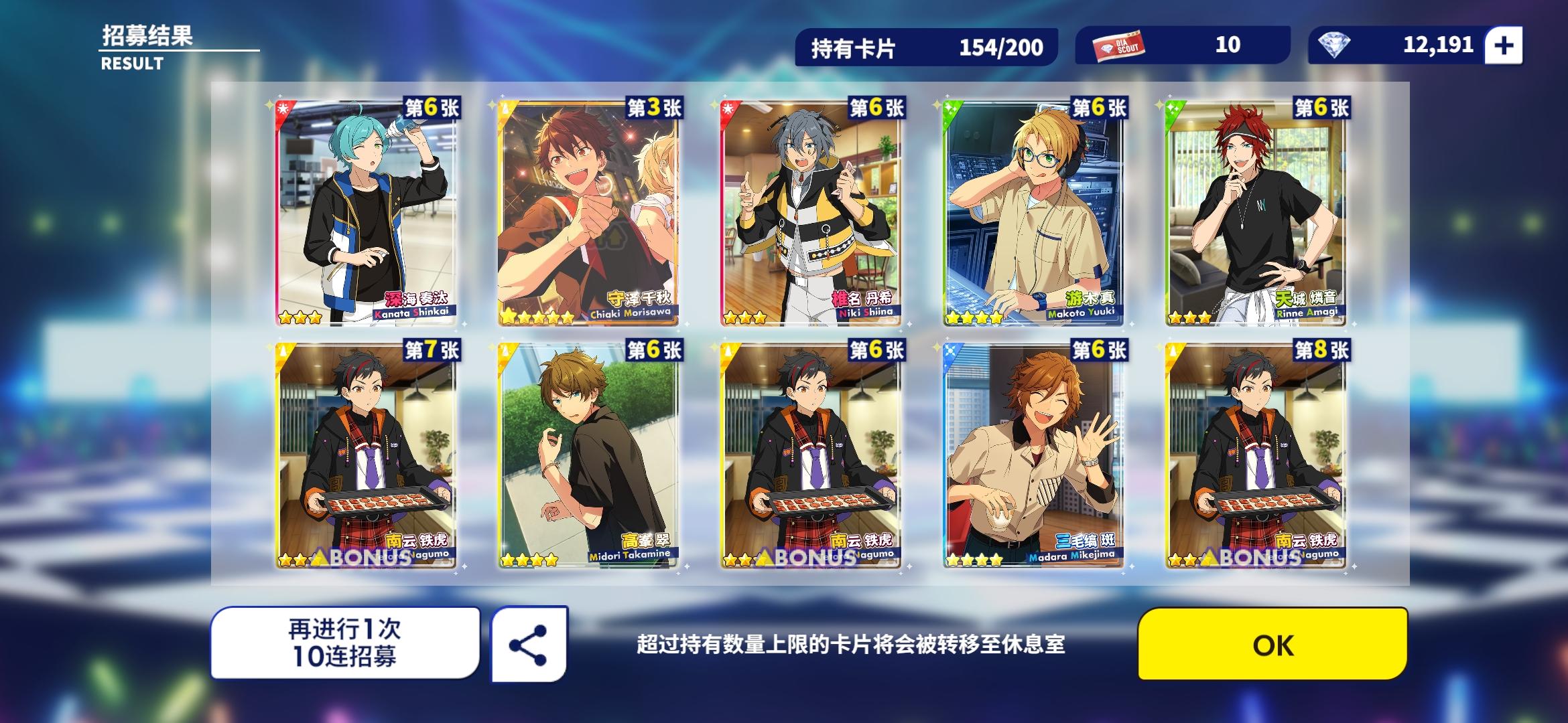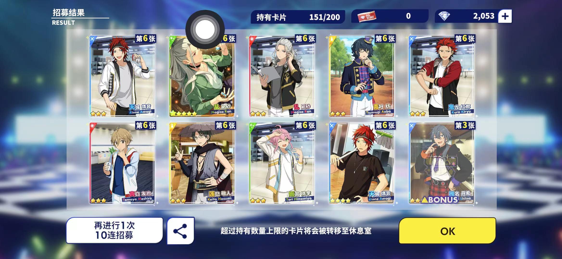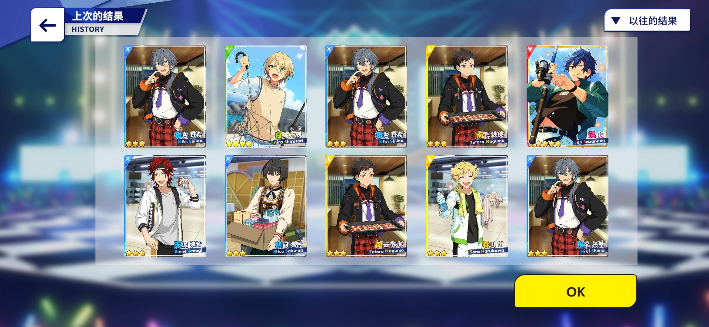 就一发十连,我晕过去本来就是为了一彩的没想到全出了呜呜要是早点抽这样我就冲狗子了然后。我终于。凑齐一队绿卡了。
