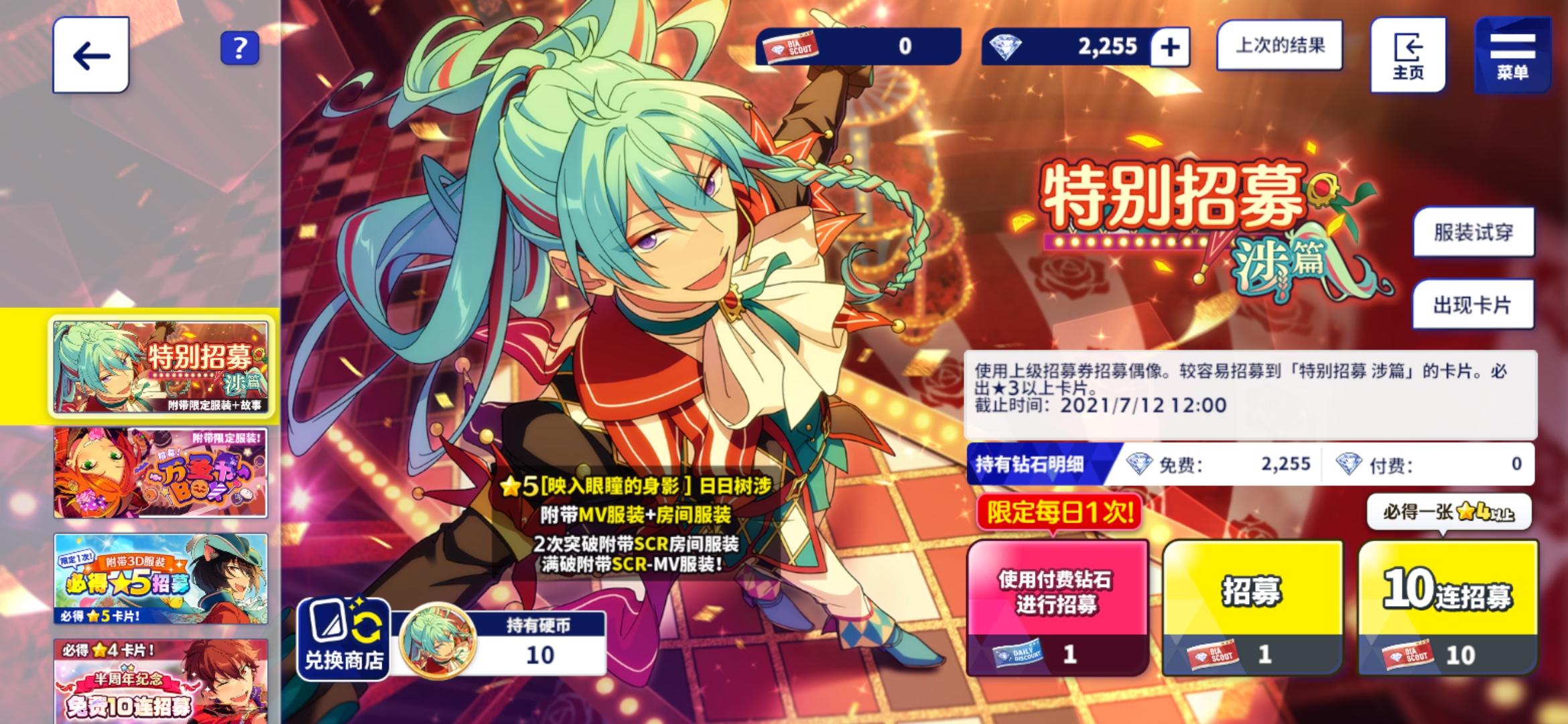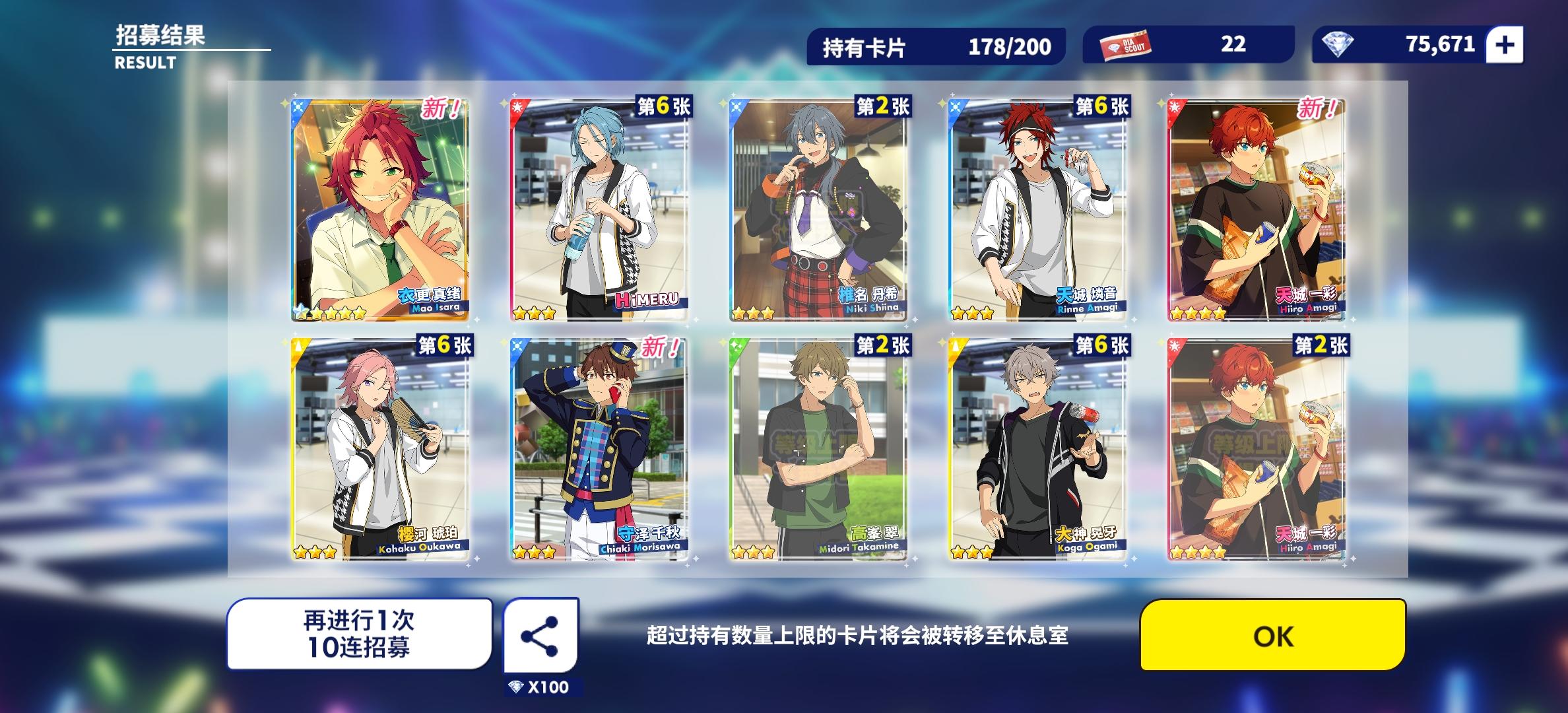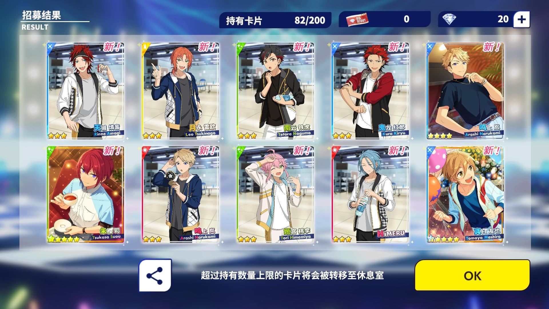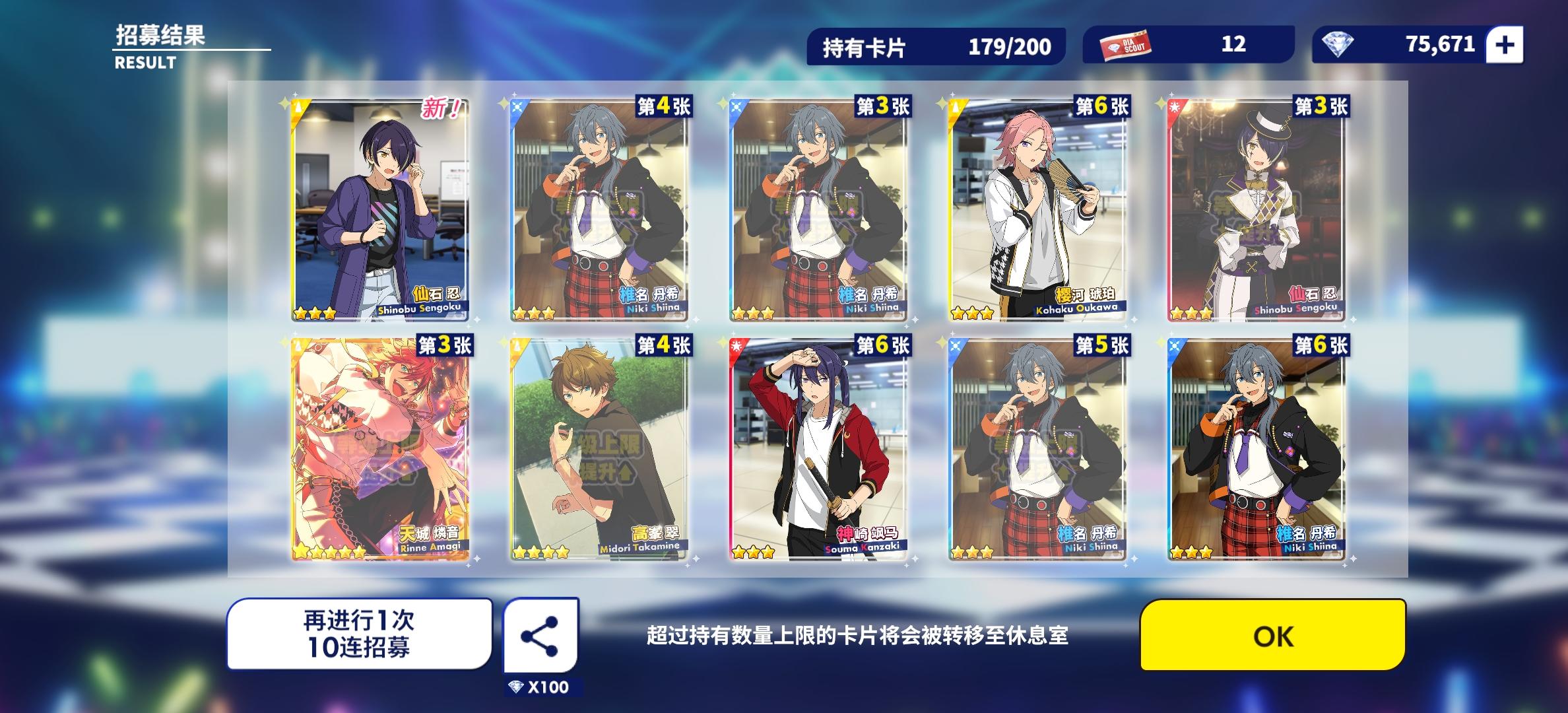 就一发十连,我晕过去本来就是为了一彩的没想到全出了呜呜要是早点抽这样我就冲狗子了然后。我终于。凑齐一队绿卡了。