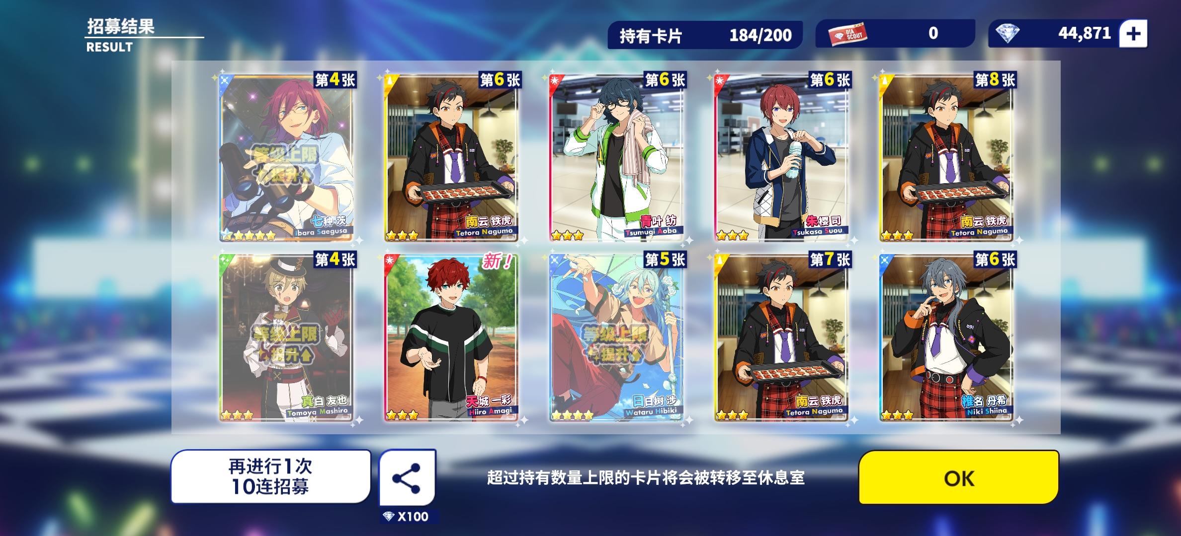 不夜城要开了先抽一波加成卡,上次司糖个人池30连4彩全歪,这次就意思意思准备了30抽左右但十连结束战斗确实是我未成想过的道路。对了这期的玄学是海选池抽到四星再下池,亲测好用。