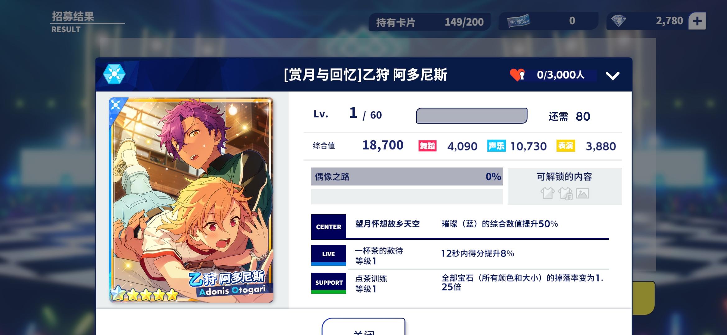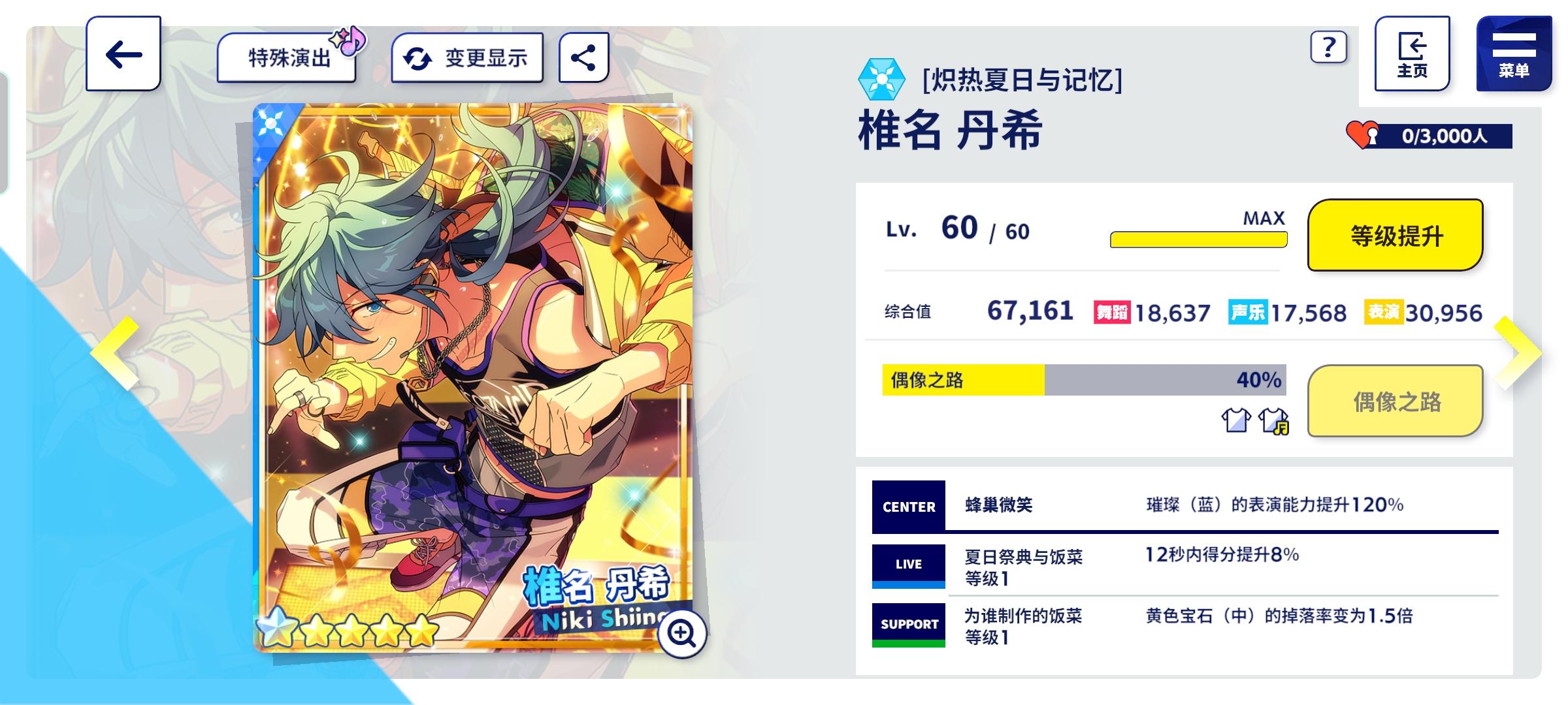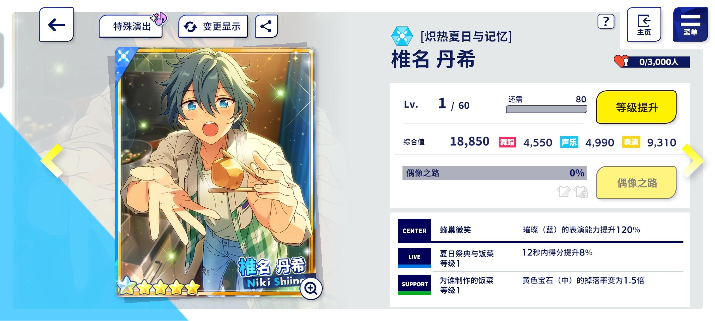 速刷拿到了niki一卡,给大家看下五星卡的属性: 个人觉得综合值不是很高,所以偶像之路没怎么解锁。(ps:本来是不打算肝这次箱活卡的,但是耐不住年少的niki太可爱o>_<o)
