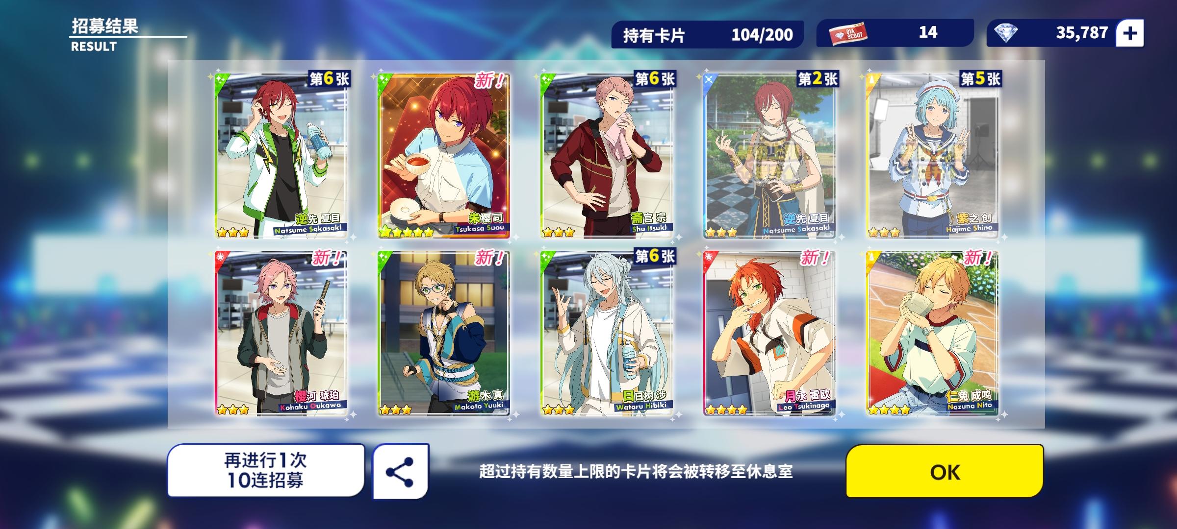 总之是60发抽到了内心忐忑,期间歪了4个很欧了