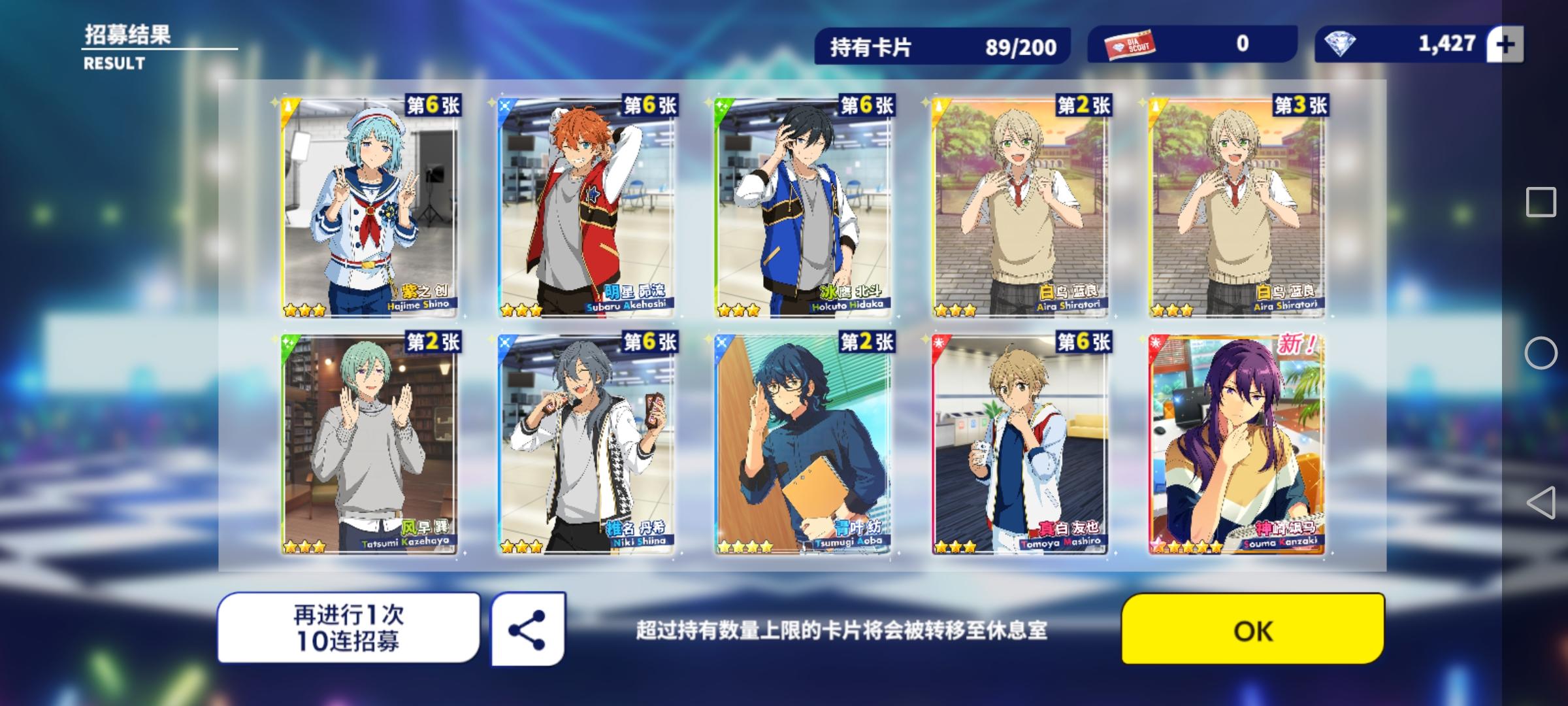 昨天终于肝完了剧情,在必出五星的buff下,出了2张,果然深夜抽卡总是比较幸运。