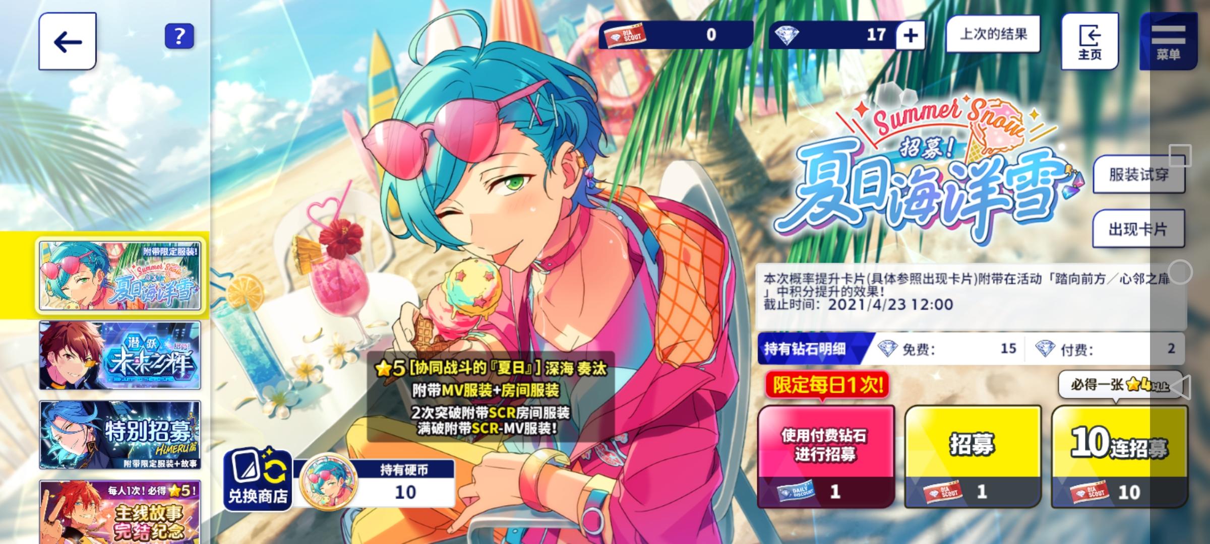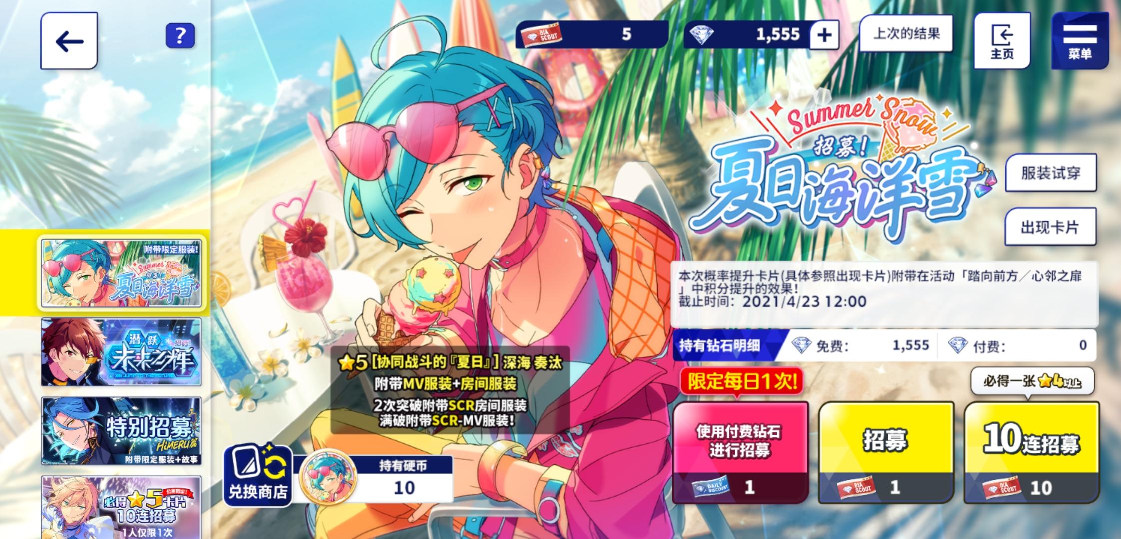 歪到什么程度才会有尽头。。。s11才出守泽千秋,没钻了s6himeru无事发生,又去买了几张月卡,付费抽了一连深海奏汰,彩光出了第二张斑