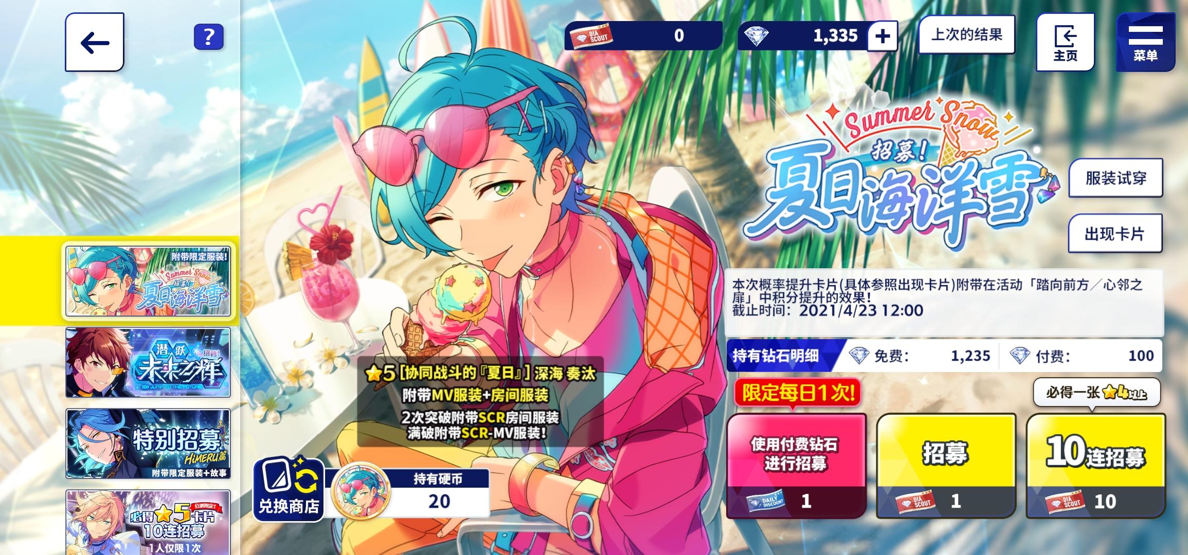给我整笑了,我今天在必五池抽到了朱樱司😂😂仿佛一次性抽了两个池