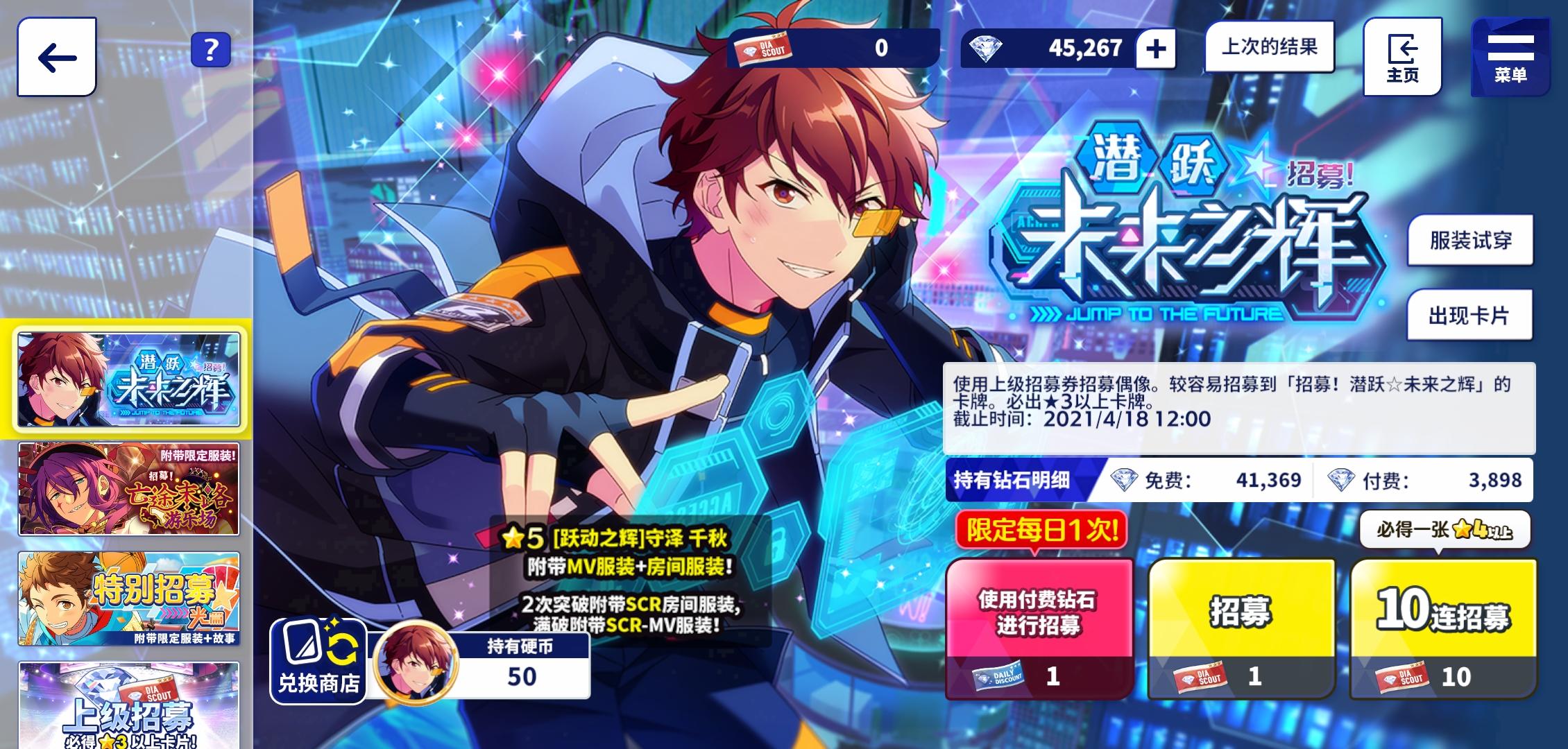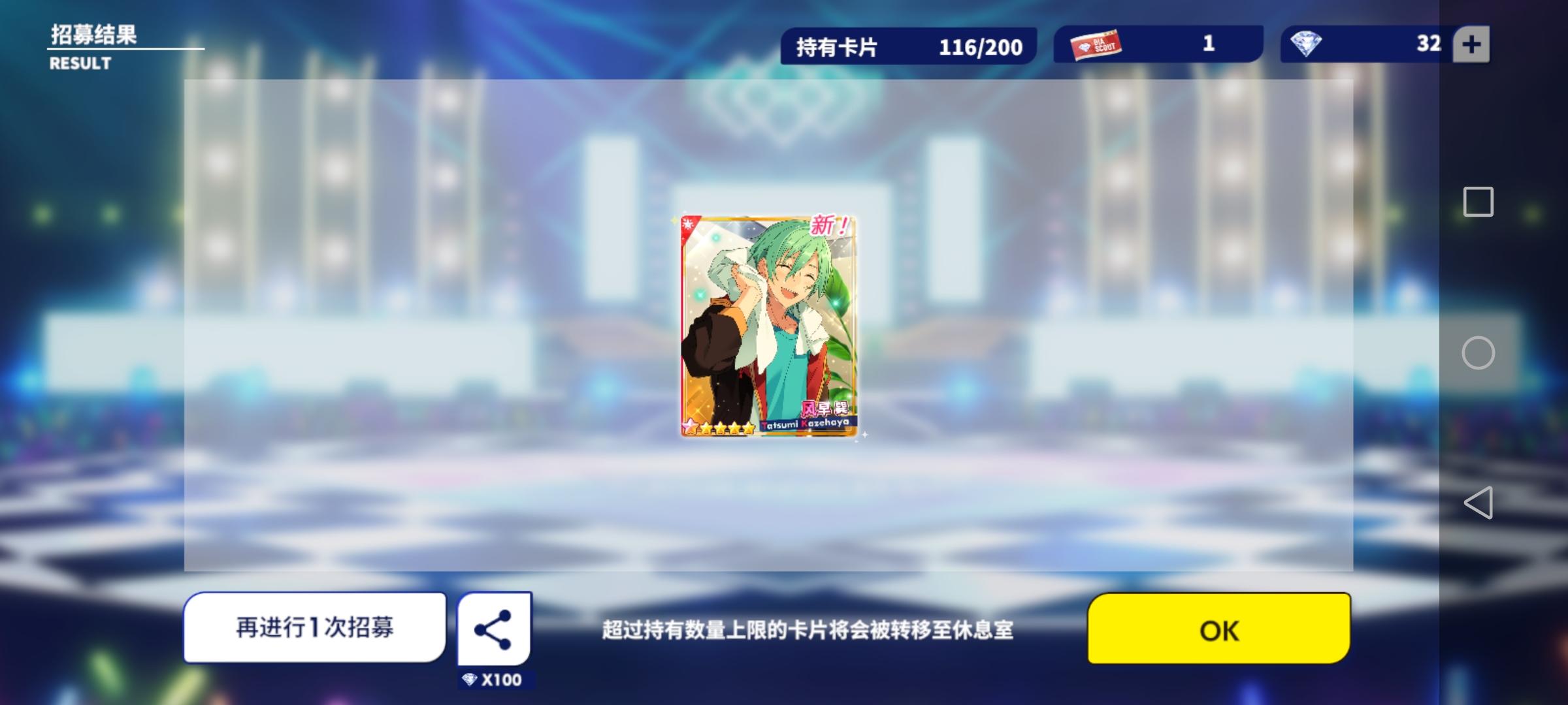 谢谢千秋,一发入魂。我本来就打算一发就算,抽不到就攒钻绑架鲤鱼。谢谢蓝卡,我凑齐一支纯蓝队了。千秋摸摸哒。