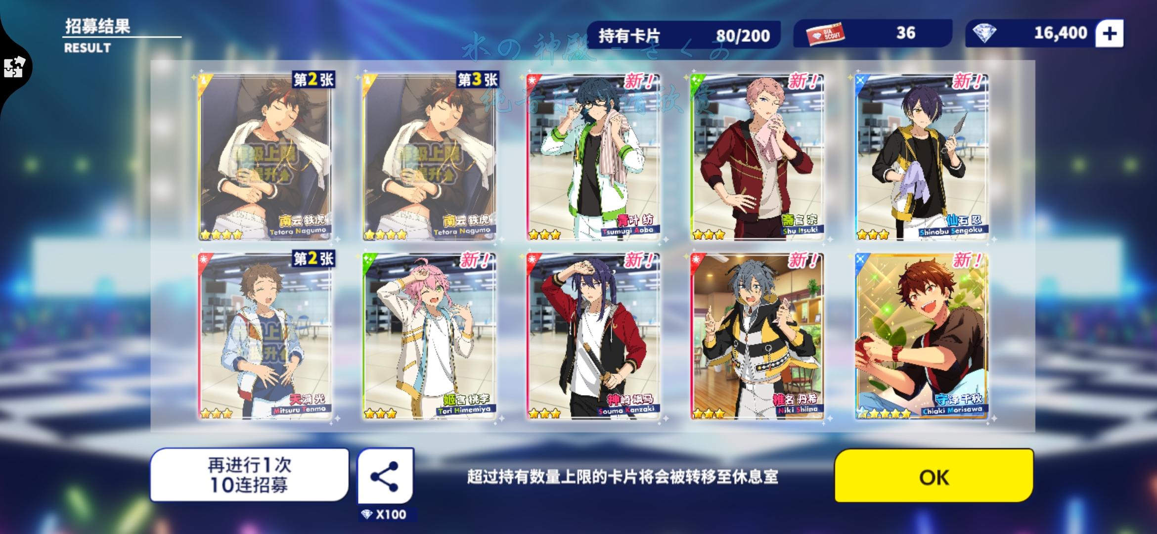 中午抽的,不是大号,不是大号,不是大号!是小小号,为大家分享点欧气w。顺便给自己攒攒大号抽卡的人品值,希望能一发入魂orz。