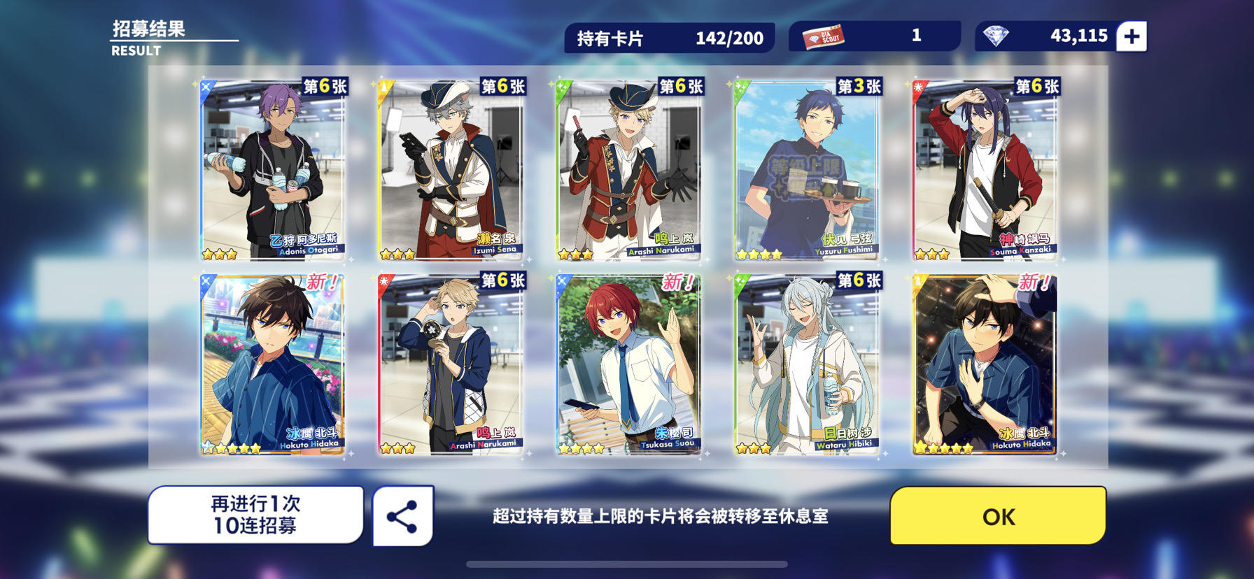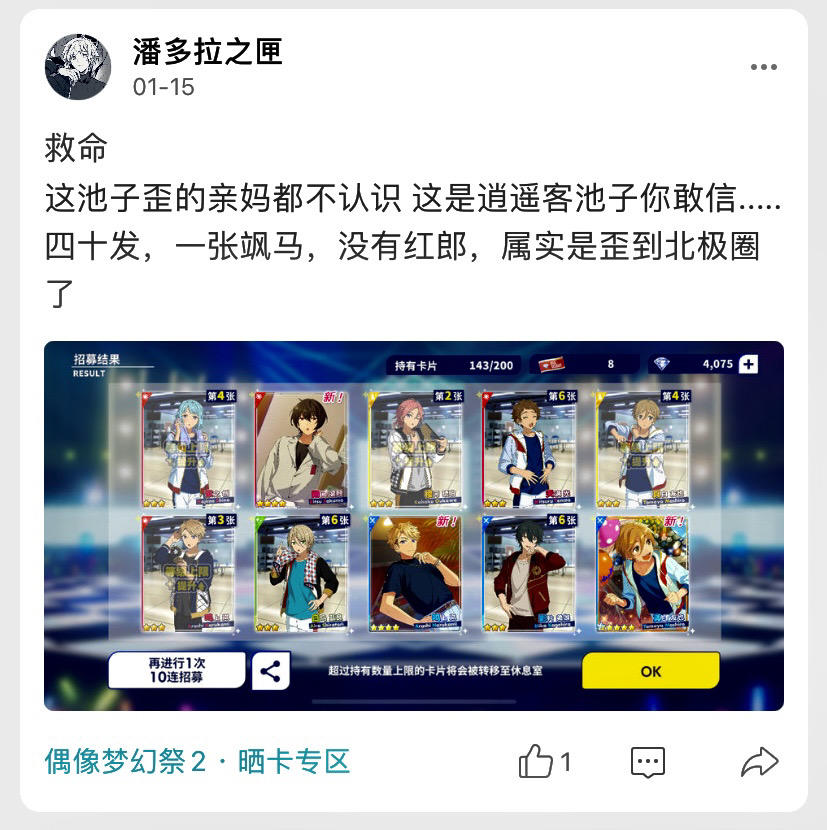 一发入魂!真白先出来的,我以为我歪了!结果最后竟然出来了纯!活动卡也都收到了!开心!