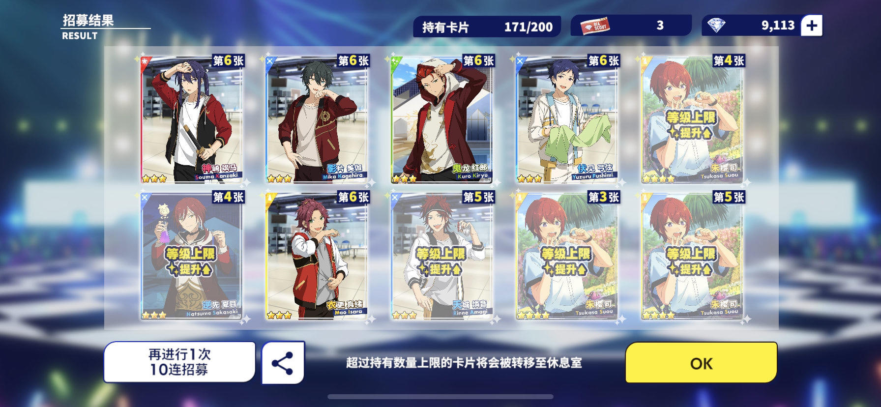 碎了点钻石,没有抽卡拿加成,糖醋鲤鱼还是一张绿卡,不亏!!