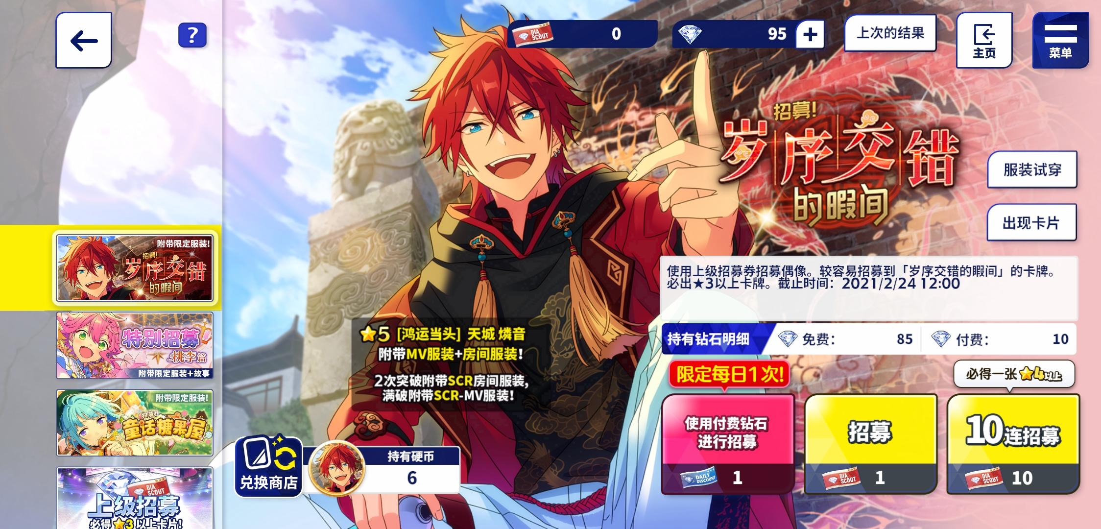 我现在又高兴又想哭,妈的,昨天抽桃李抽了五十抽歪了,今天抽朱樱司,糖醋鲤鱼来了朱樱司都没来,我麻了补充:司糖第四十抽出了,隔壁桃李130抽歪了三个,我现在走得很安详,一时上头一点钻石都没有了()