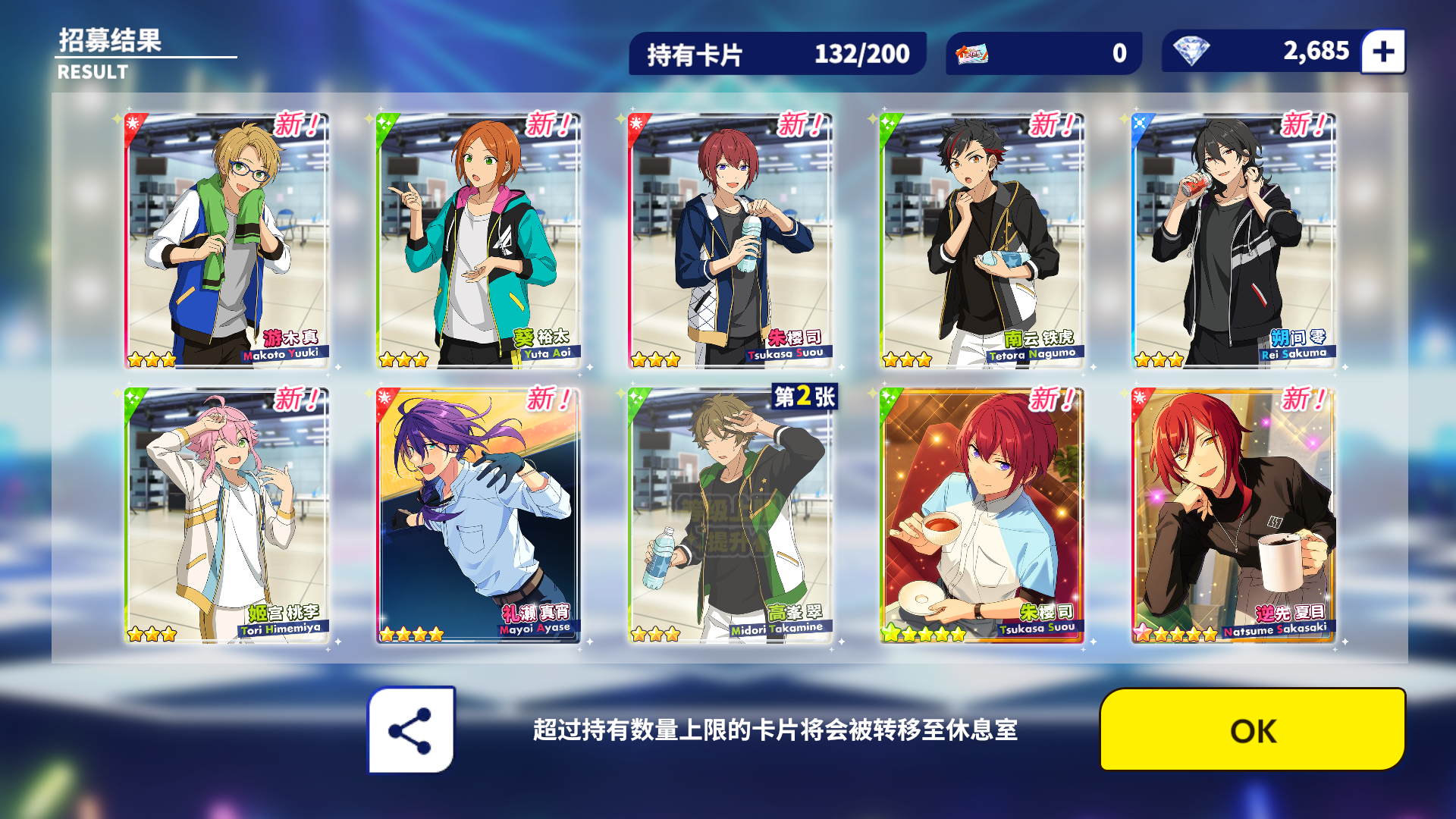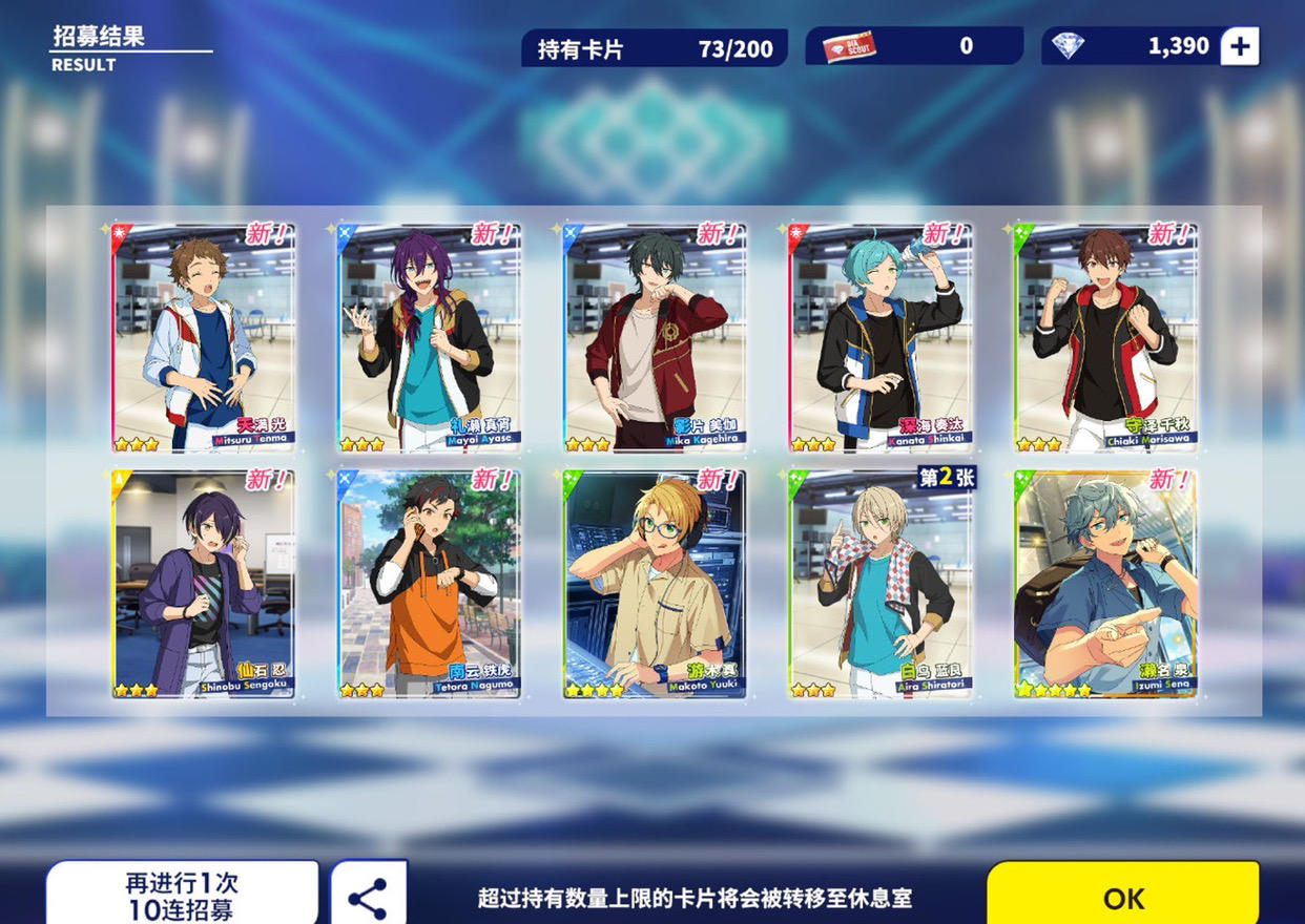 终于完成任务啦!好开心,这次白拿了一个满破五星还用星星的十连券抽出来了一个!我现在有五个五星啦!(害,少之又少)