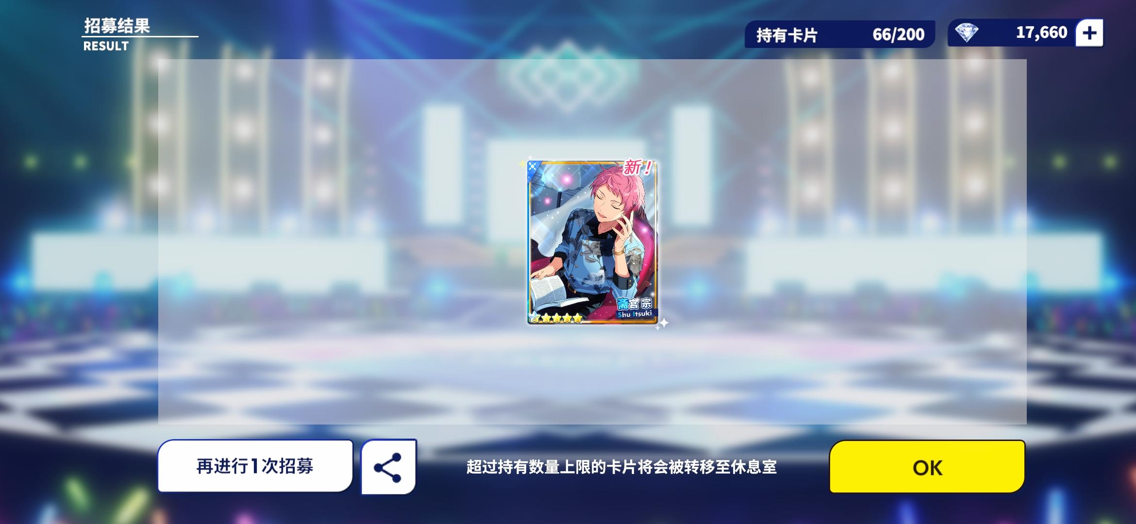前两天免费单抽都是三星,然后今天在抽之前我说:我愿意用我室友的十根头换五星!虽然没出五星但是出了四星,哈哈哈,看来下次要多点头发
