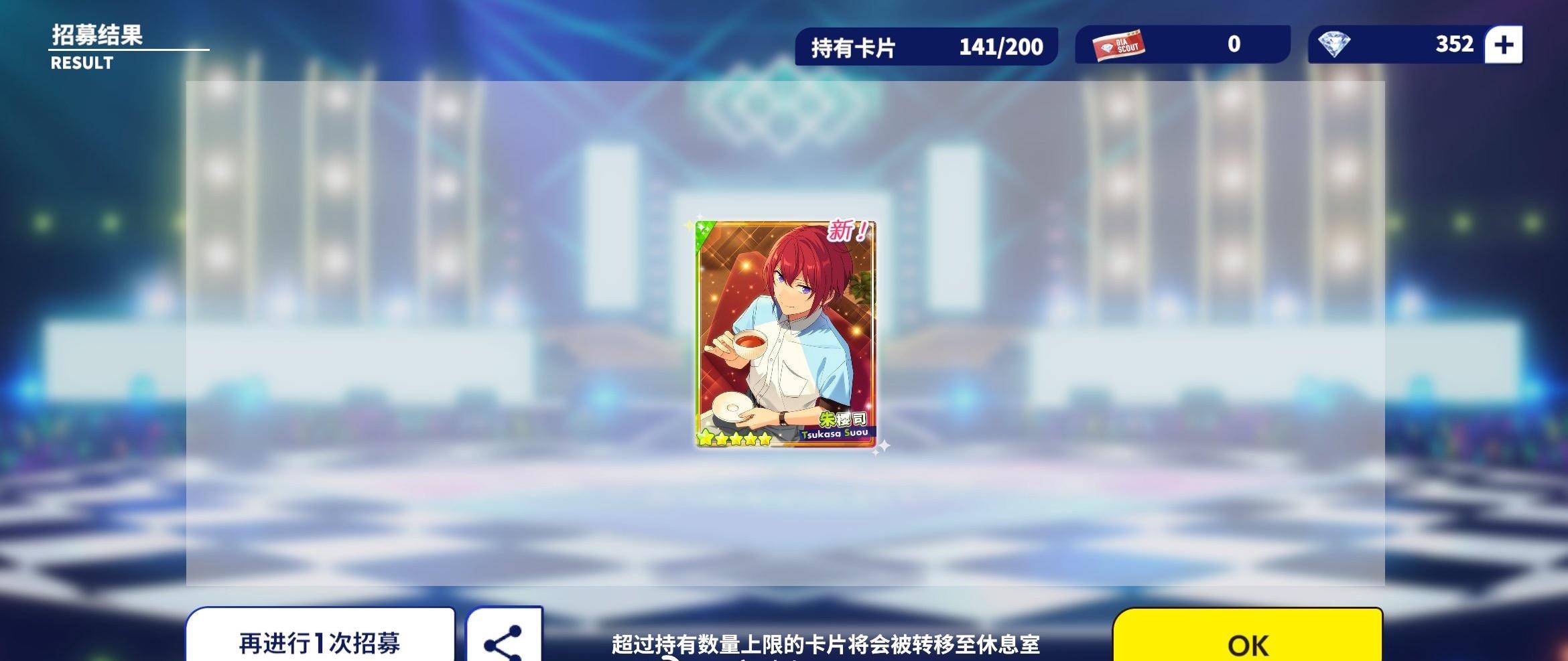 啊啊啊啊啊池子真的好歪啊啊啊啊啊,如图T_T抽了四十抽整,十抽歪了宗老师的五星(已有)四十抽的时候歪的零(吸血鬼)的五星,虽然抽这个池子的时候想的是出一张黄卡(一张能用黄卡都没有)我也很满足了吧。。。但是在活动池歪了两张别的真的受不了啊T_T(朋友都陆续出卡了,只有我还在歪池的路上T_T)