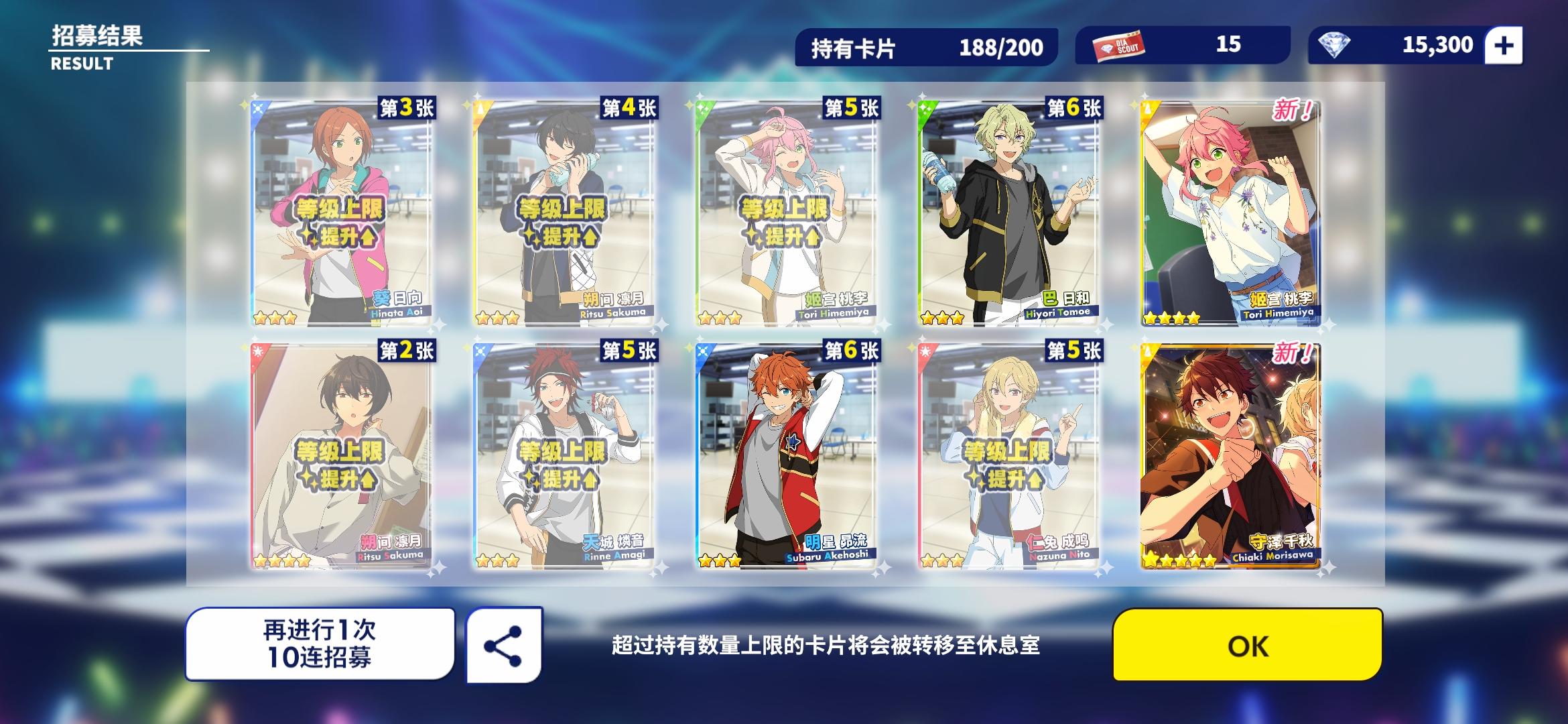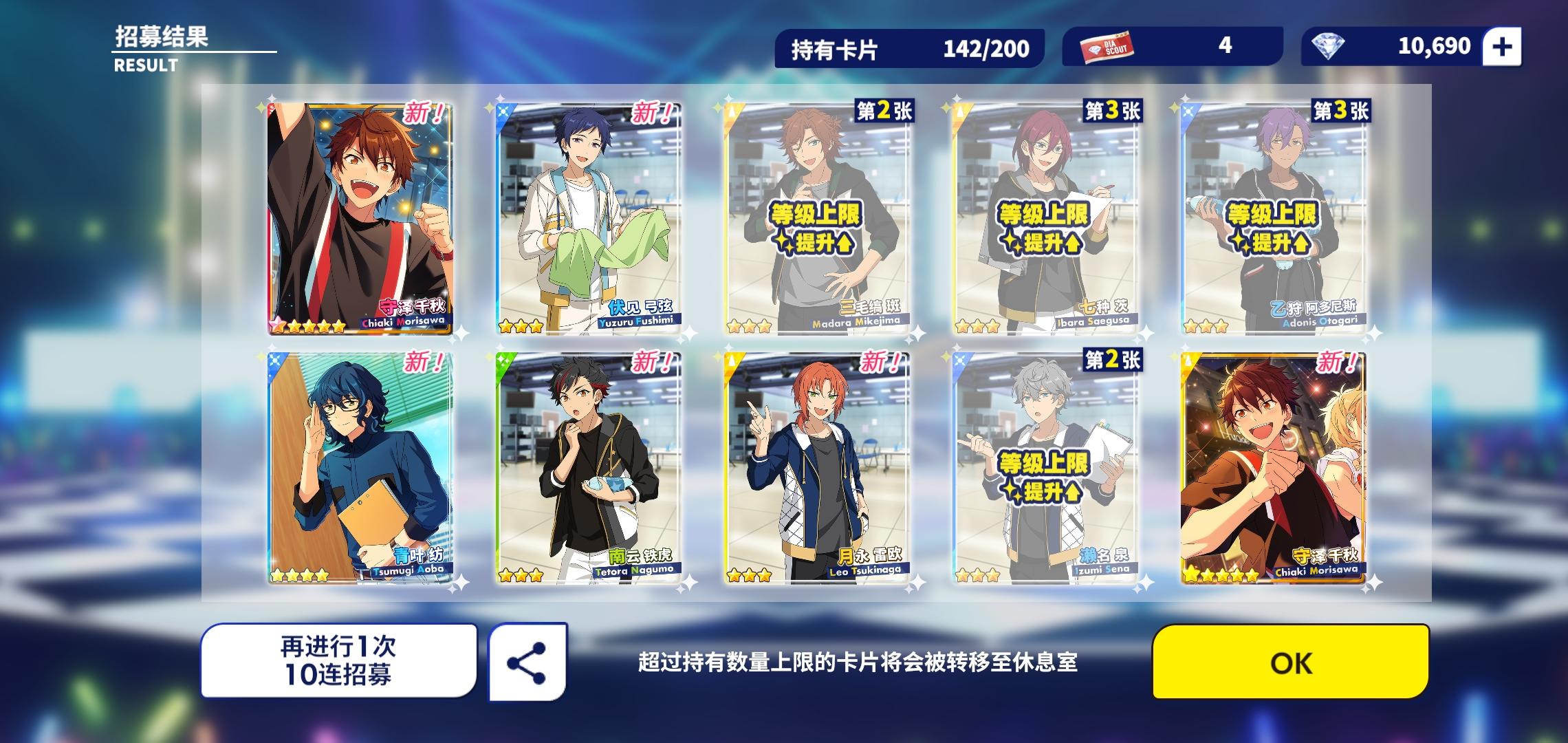单抽出彩光,一开始觉得单抽五星就够了五年寿命没了,虽然台词是千秋的但应该是普五叠卡吧,没想到是活动5星总共减了十年寿命hhh这次还氪了大月卡,看来可以省不少翻倍卡