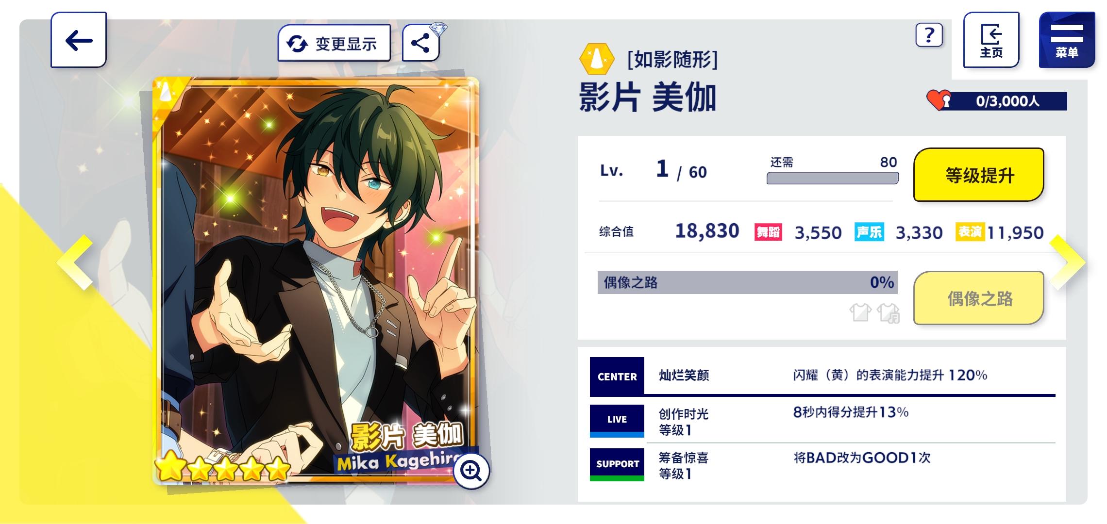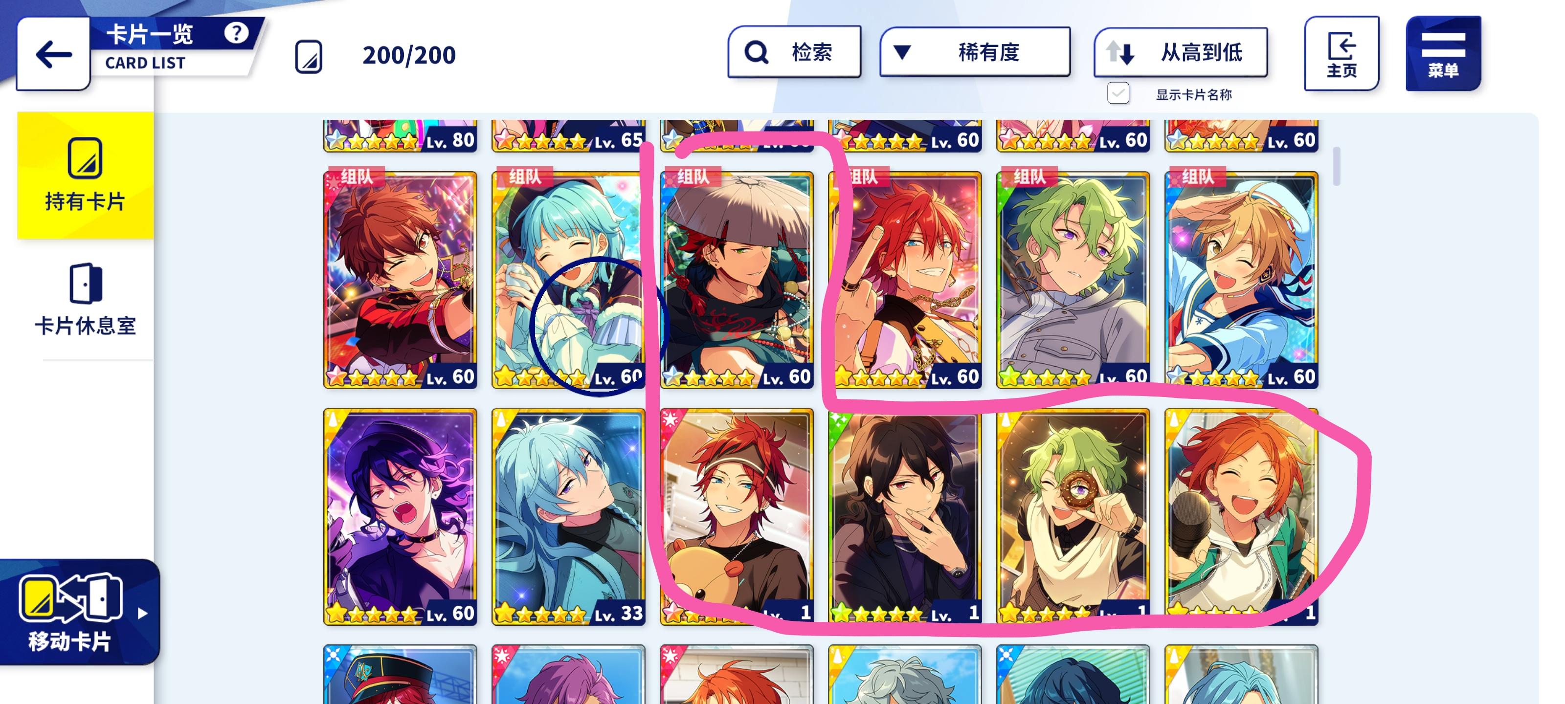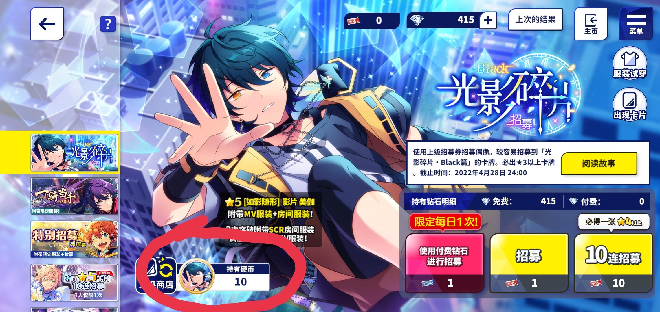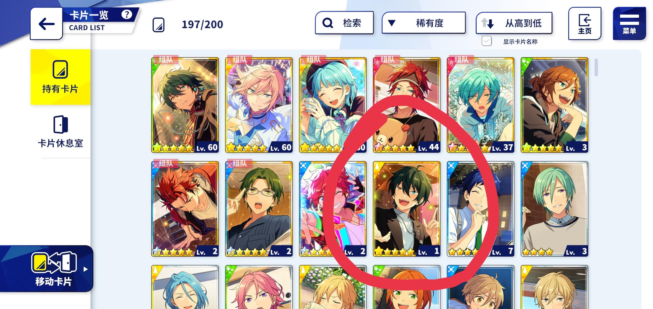 最近的阳寿抽卡:试水十发出了小咪 今天生日限定抽卡三色五星 两张新的一张纺我直接抽满破了