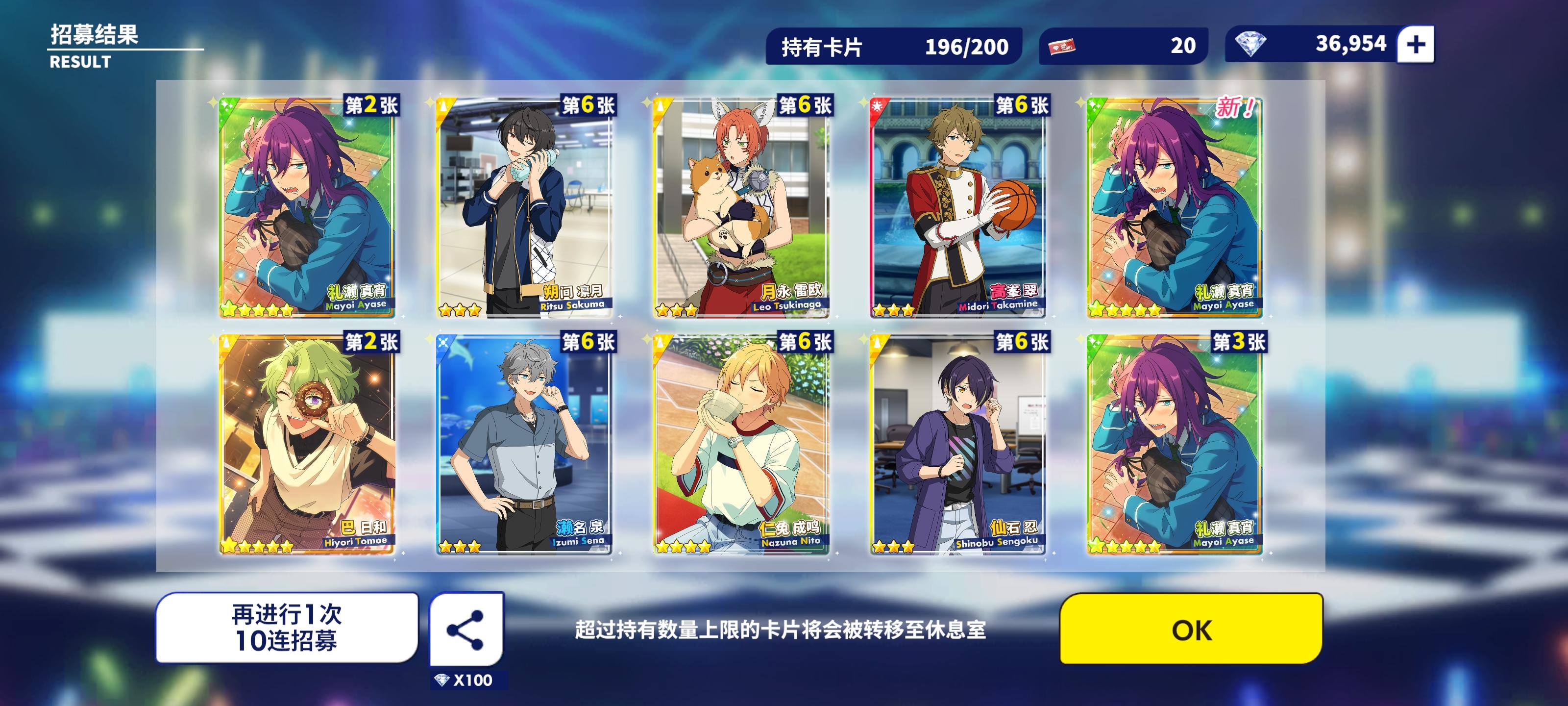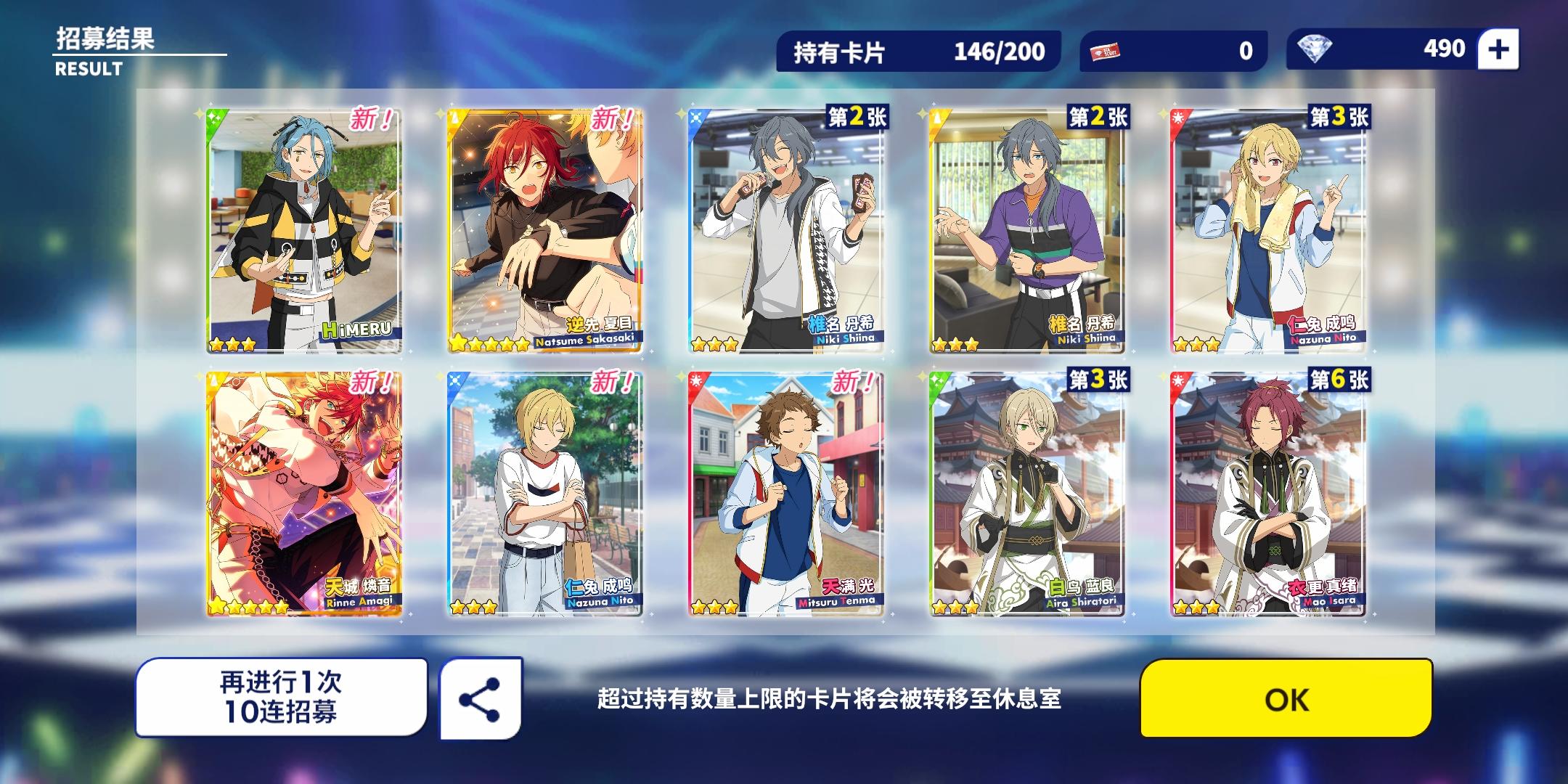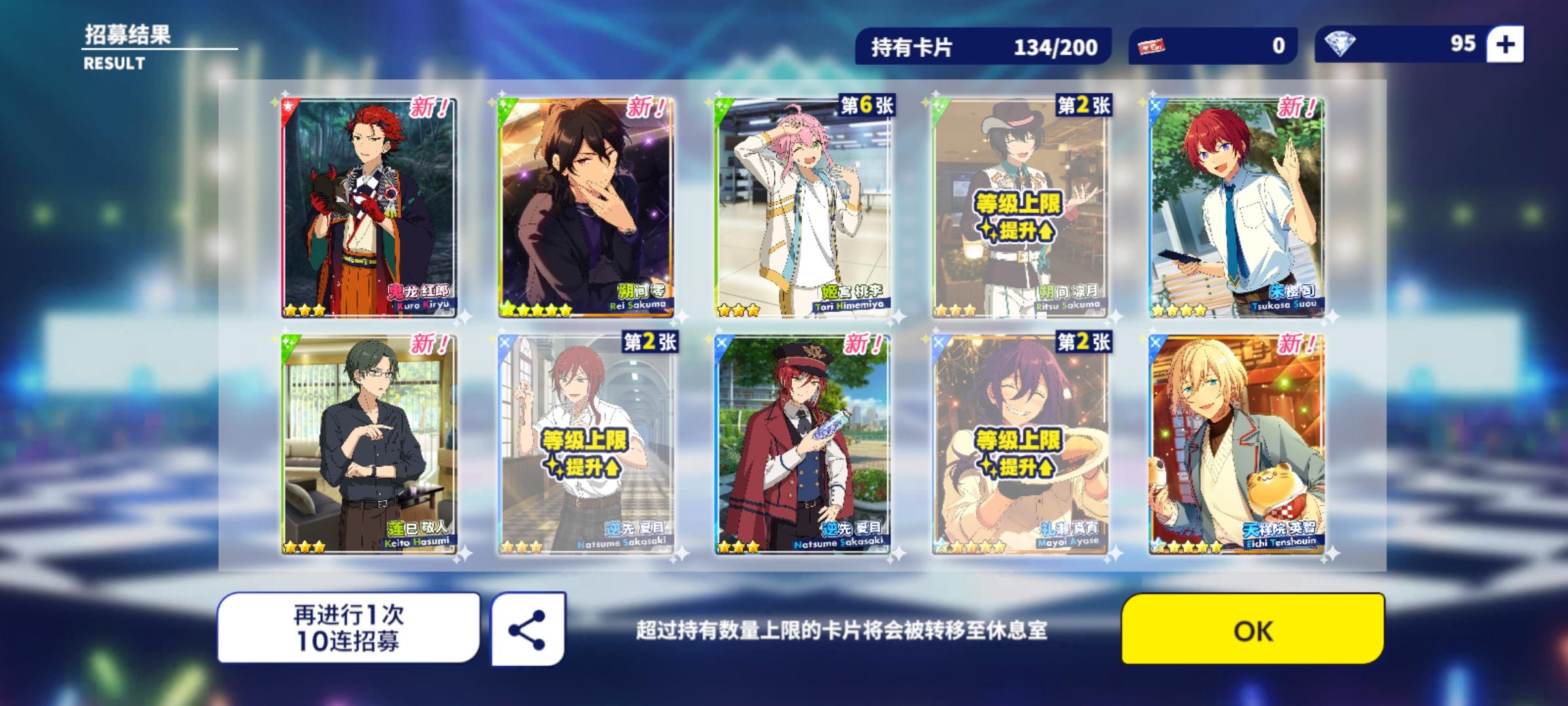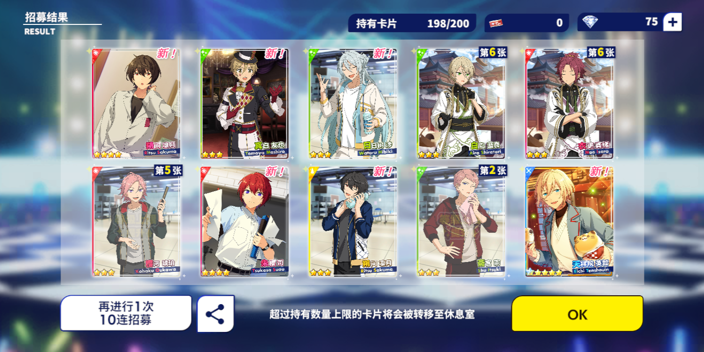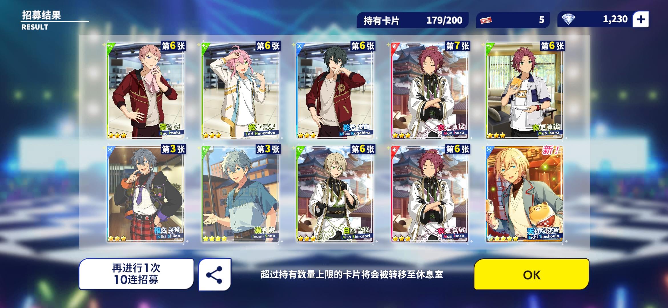 窝里个去,真就有有心栽花花不开,无心插柳成荫啊!英智170抽才出来,抱着试试的心态抽了不是很推的宙,结果第一个十连就出来了……一种开心但又不完全开心的感觉……