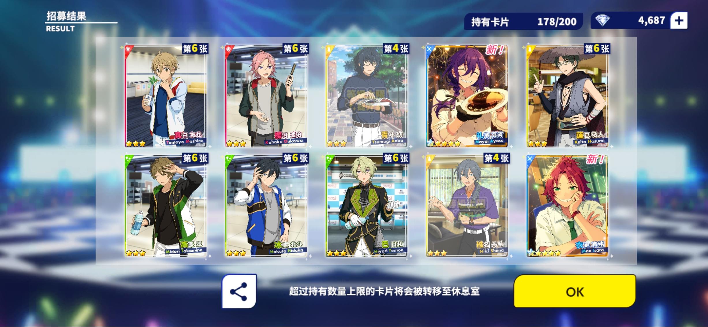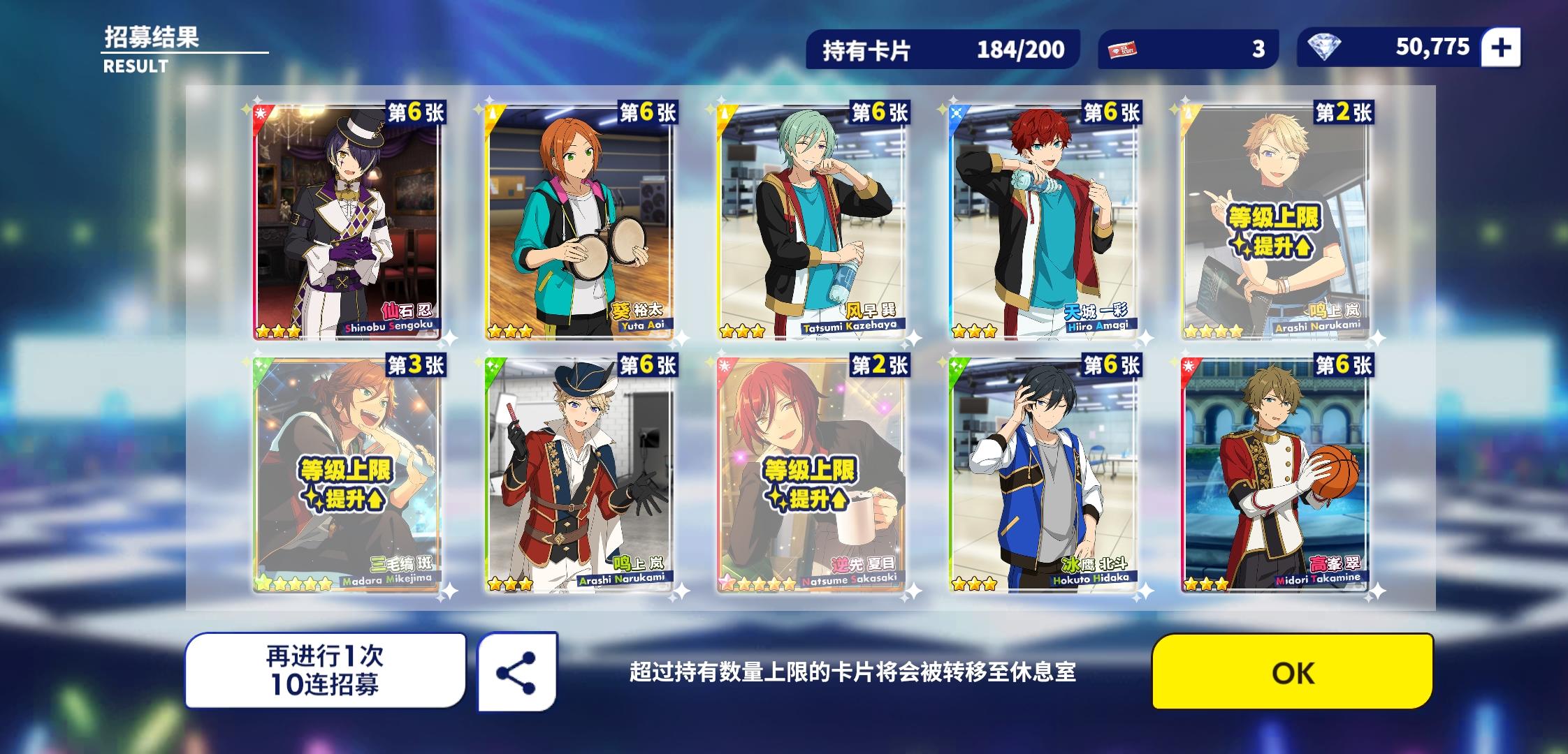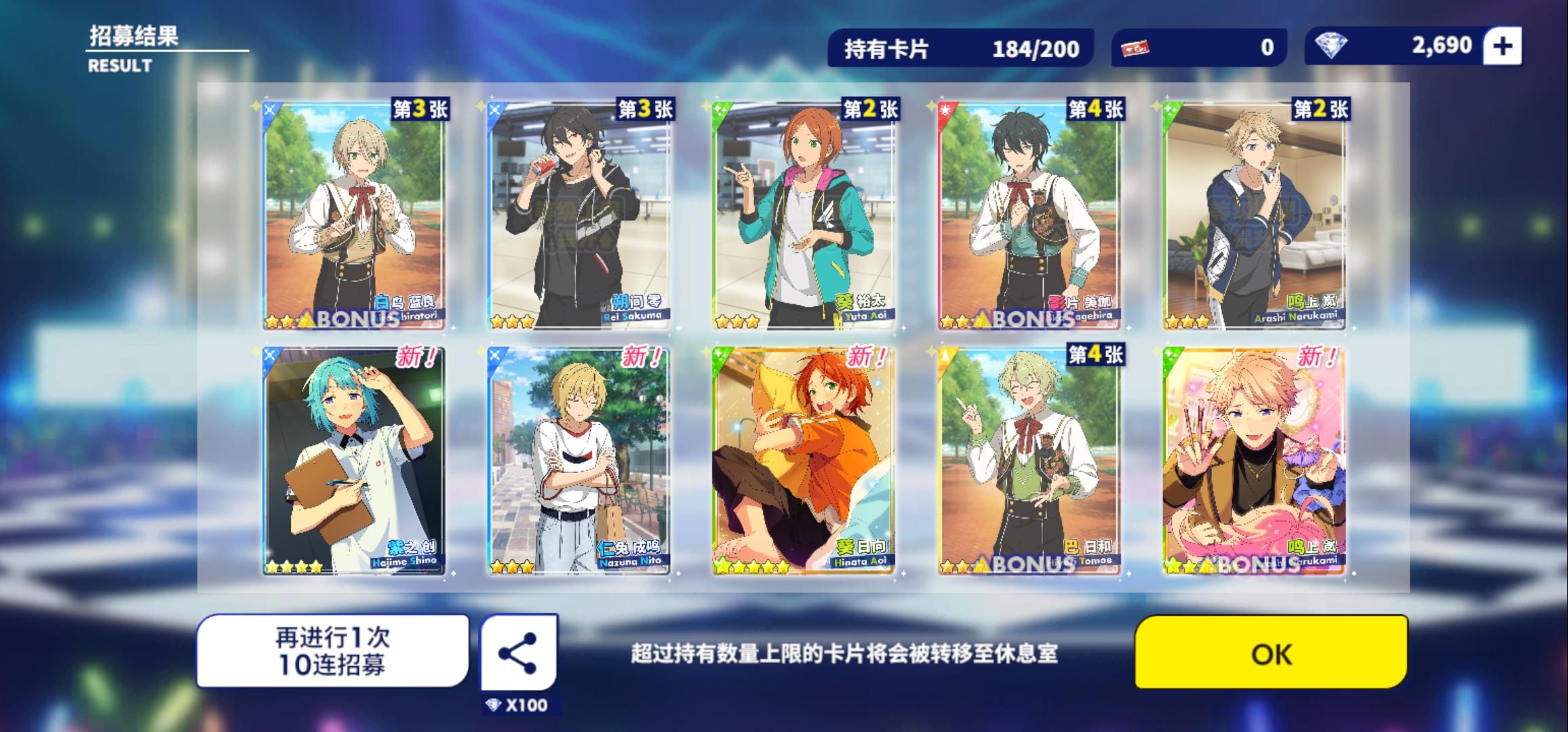 本来就是想要一个小桃李就好了,没想到一个十连还出了岚,啊啊啊!感谢小偶像的眷顾!
