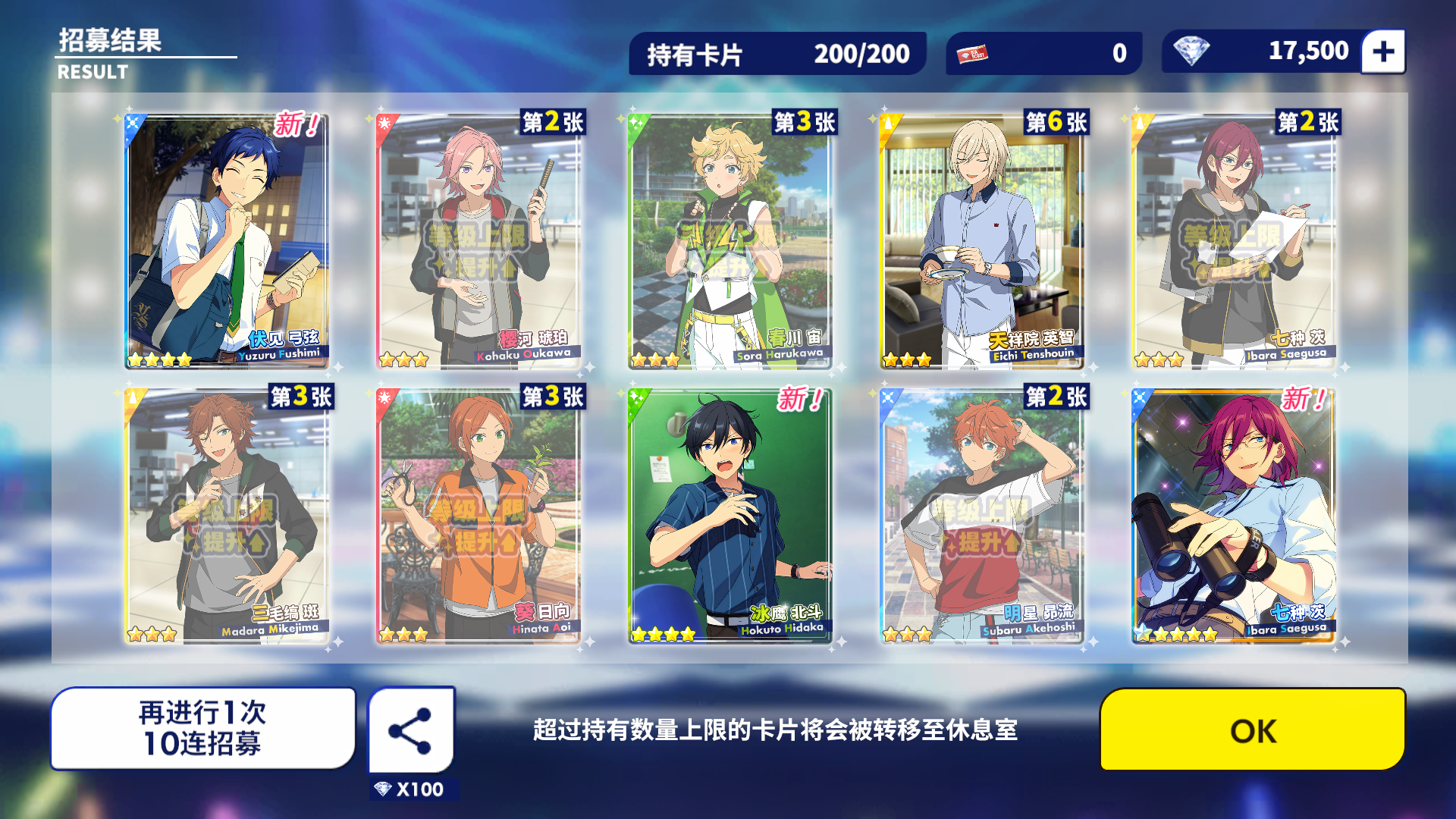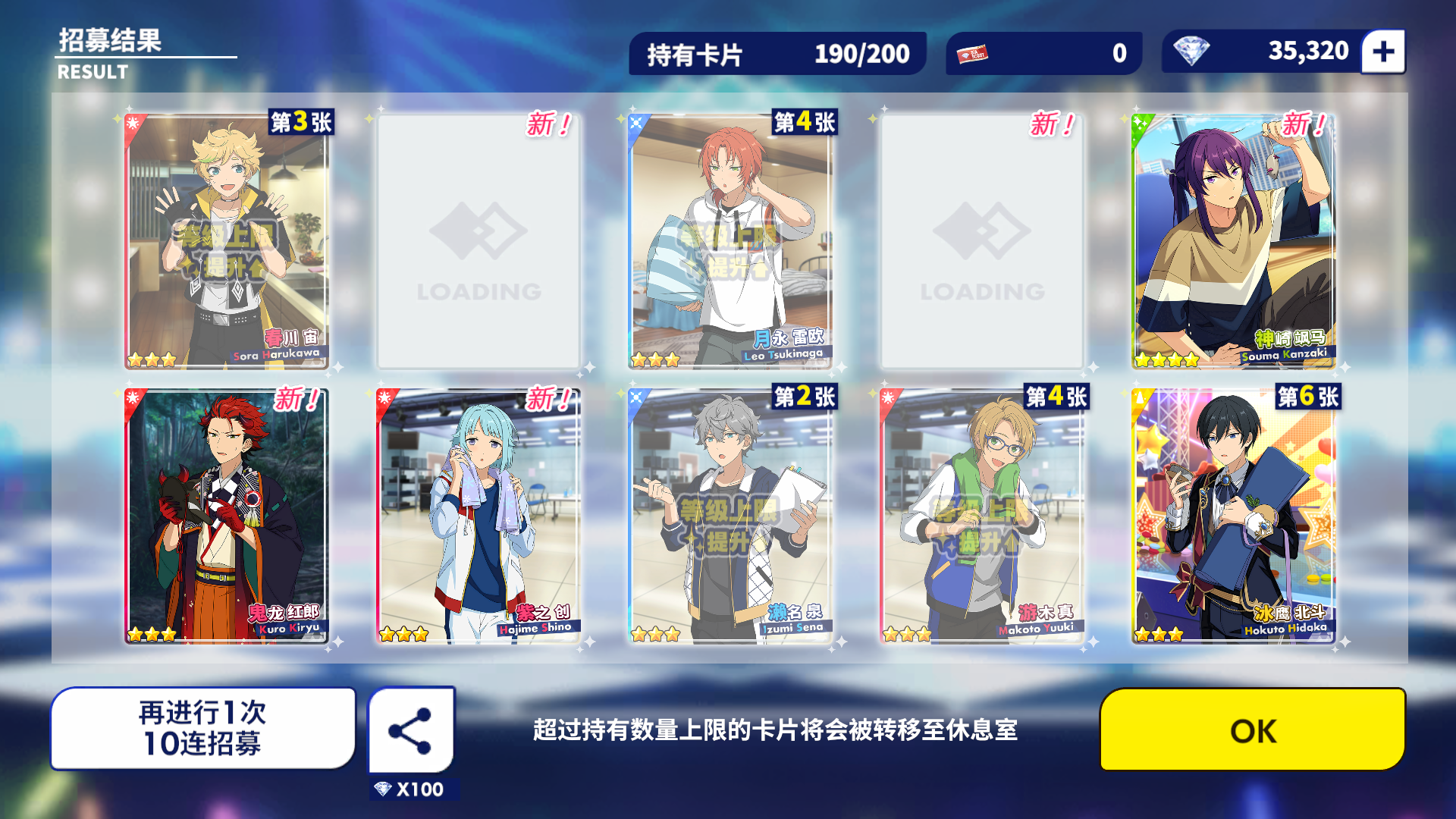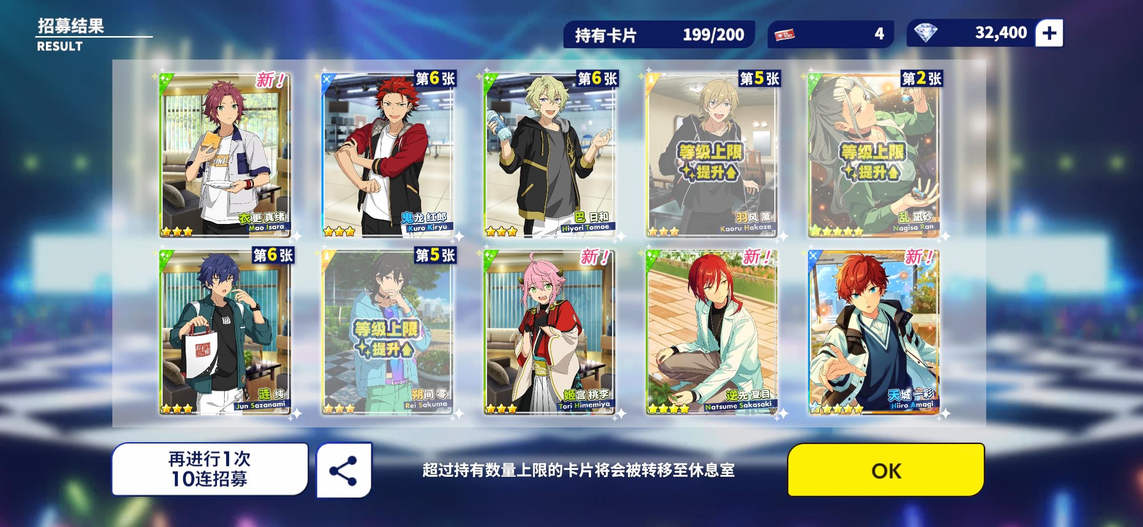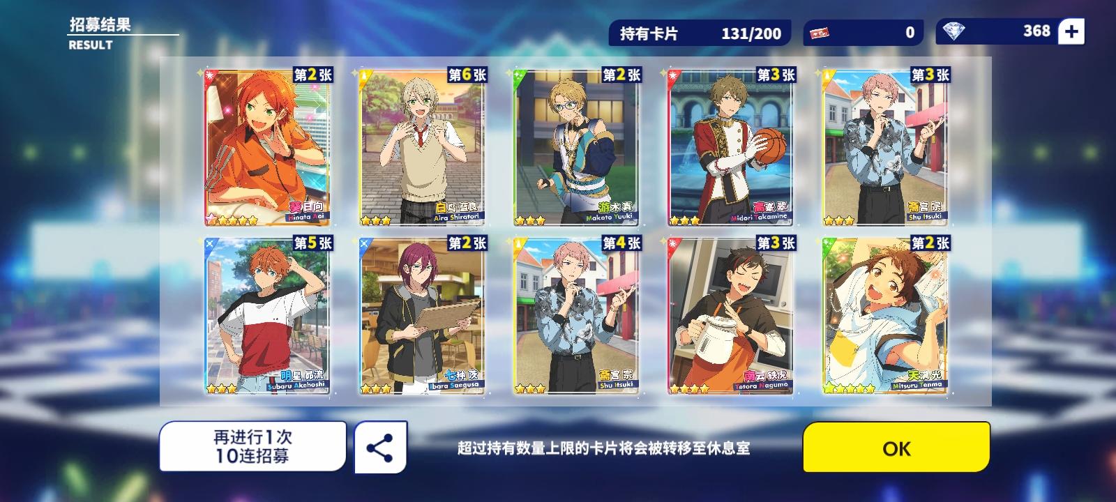 本来就是想要一个小桃李就好了,没想到一个十连还出了岚,啊啊啊!感谢小偶像的眷顾!