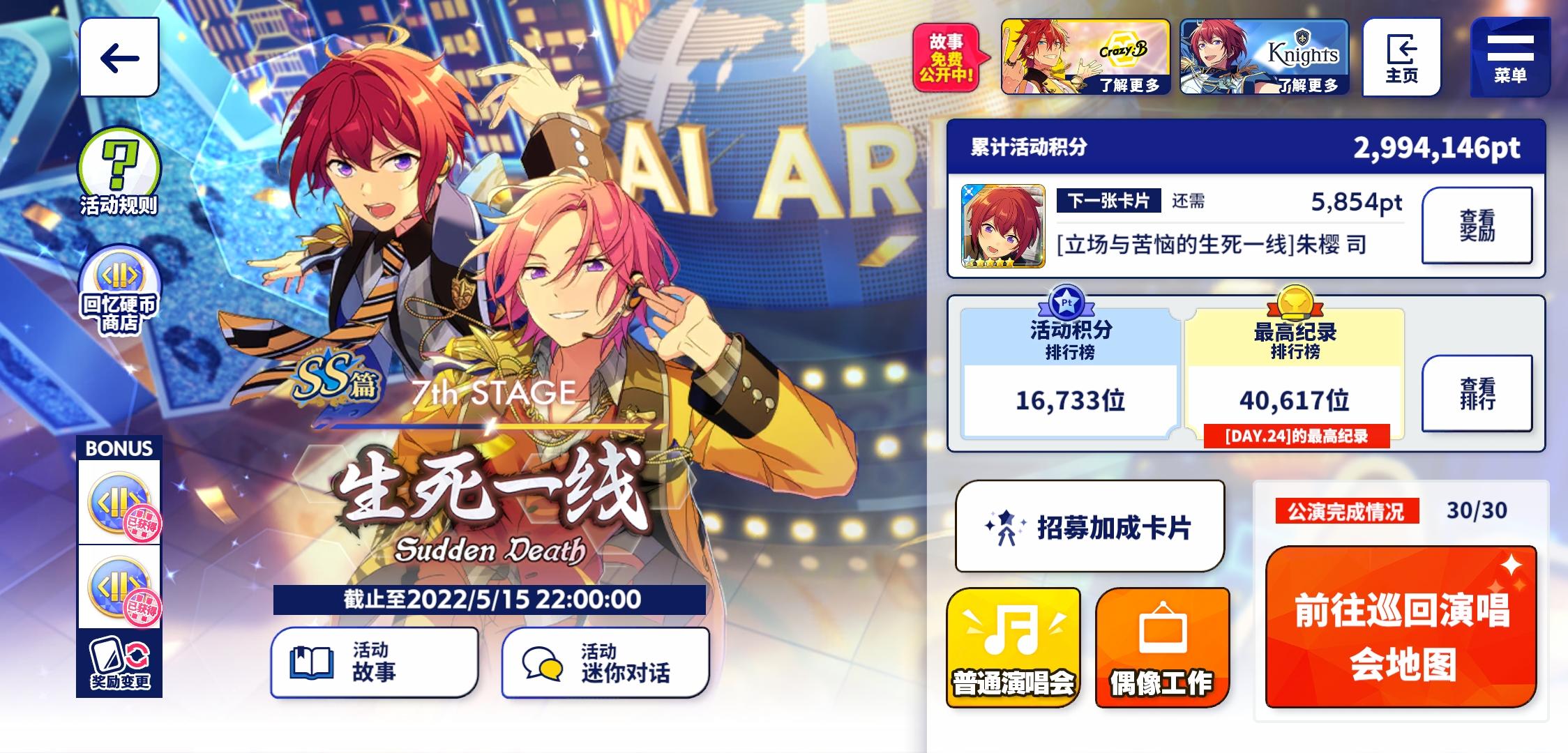 day4UID:459410381经历了打满三十天忘记打巡演刷星光,转而协力了一天+开了自动没有刷到星光+以为今天晚上就已经结束了等等乱七八糟的奇怪失误之后,还卡在270w我最后的星能补上吗