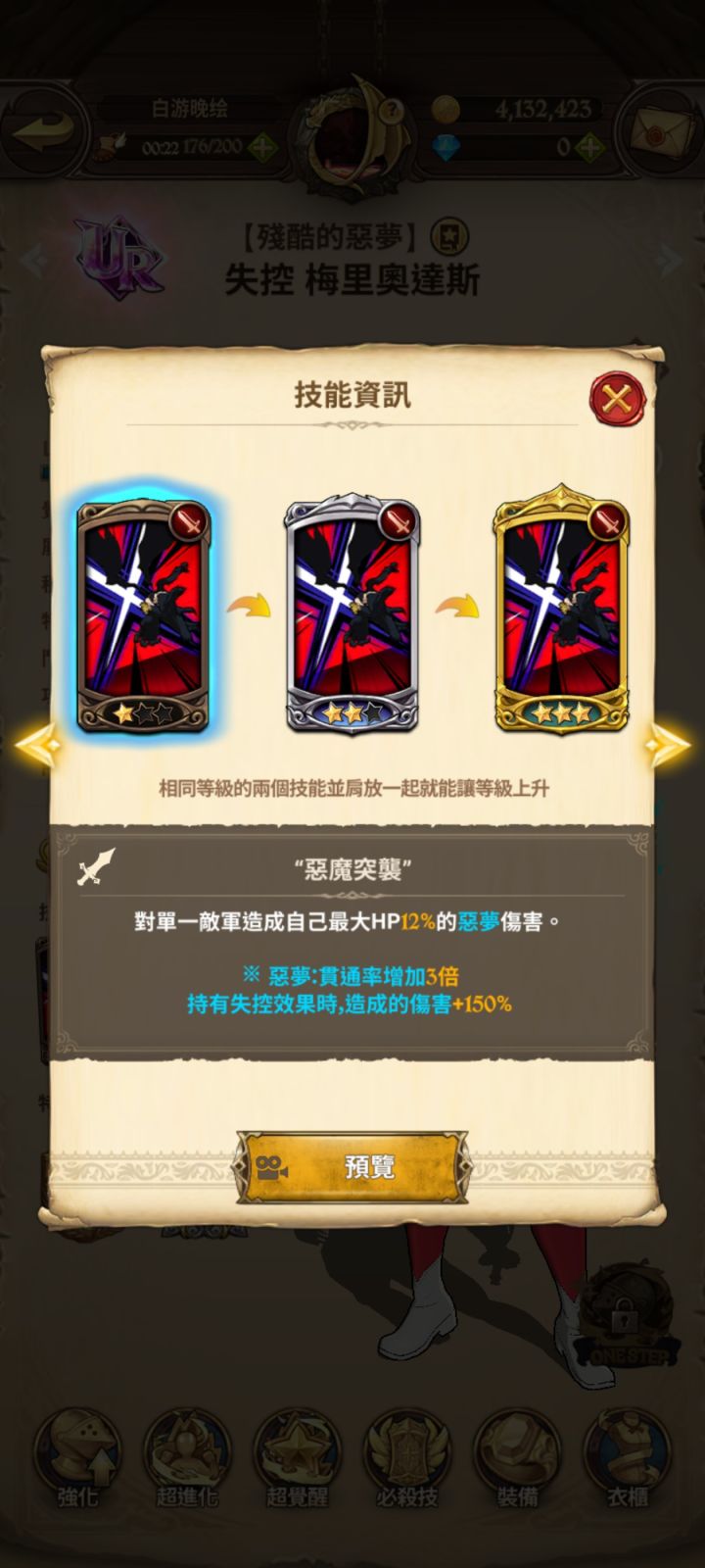 同时适合先手和后手角色:噩梦梅利奥达斯,叠血量(hp)、挑衅、先手标记噩梦的印记(受到的伤害量不会超过最大hp50%)、后手失控打高额伤害。活动中最后的许愿大奖可以解锁他的圣物,你们拿到了吗?