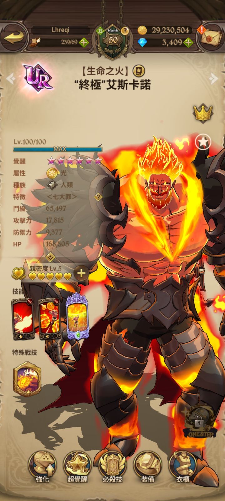 先放上技能 通俗解释一下技能效果,一技能单体灼热相当于强化版杀到加上群体30绝命,二技能群体威压相当于背水版的杀到加上切削,大招比例随宝数增加双杀到。多了一个被动在大招上随宝具等级提升最后之炎的数量,死亡时自动触发,锁血免疫debuff,扣除所有必杀豆。最后之炎效果看翻译。这个角色最离谱地方出了一二技能高额的活力,还有大招,满宝算上双杀到是1650群伤,三宝就有960群伤加上一发技能就能轻松1