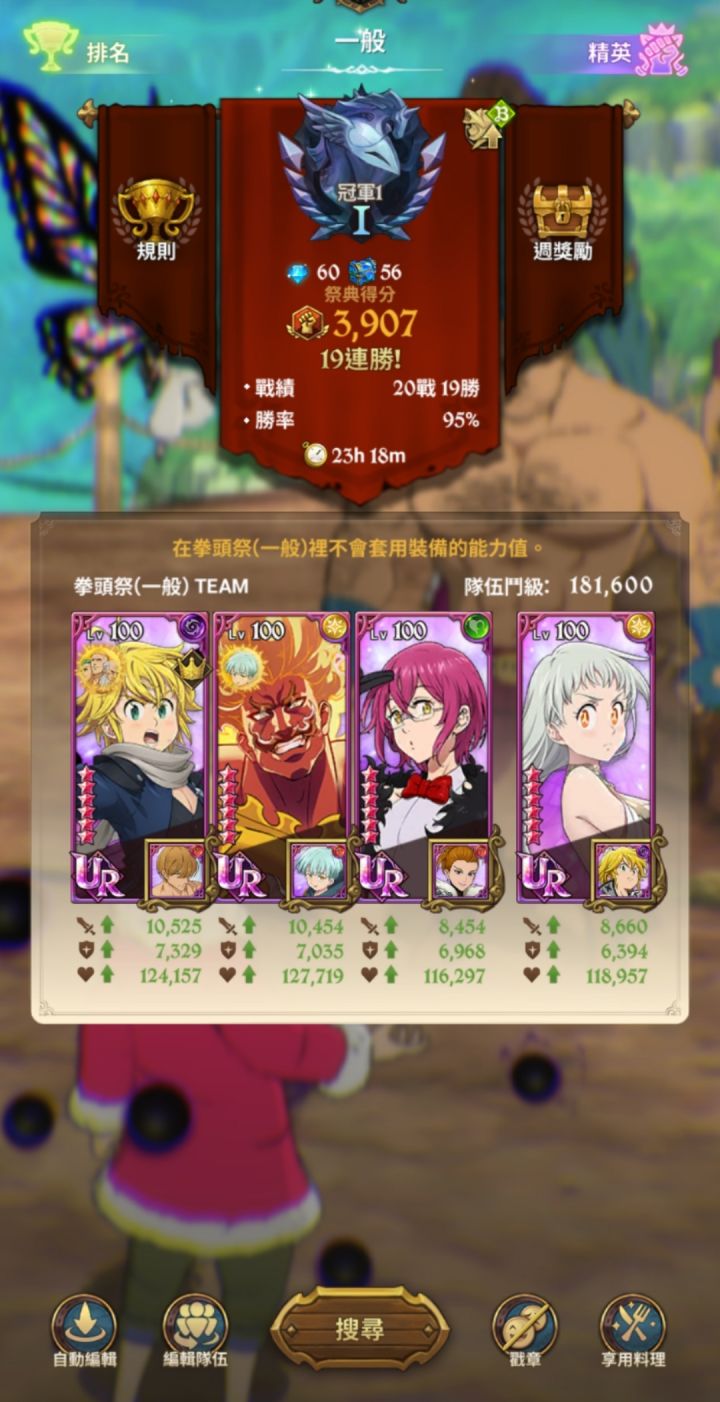 新手没有不明无名圣物和魔女史莱姆的,就用这队吧,我也是下星期才有无名圣物所以一直在看有没有别的队友能拿前百分5%,这4个角色基本买得基础号都能配齐所以拿这个混奖励去吧,网上太子妃2万攻击的硬性条件太高了,大佬就无视吧,这队就26万战力上下刚好能打的门槛要求极低。图放这里了,打不到分的可以参考下。只是分享新手没不明队可以试试。