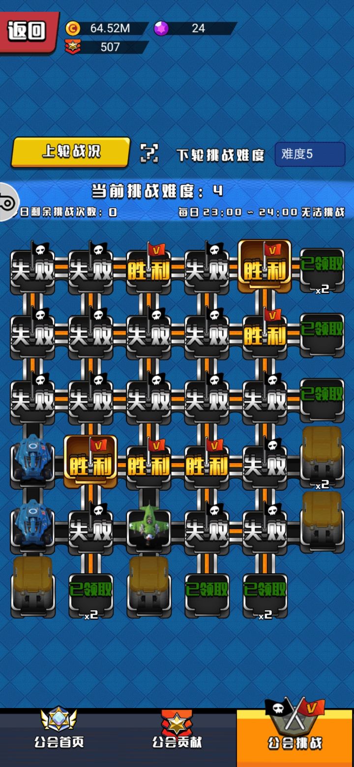 公会战是容易被忽略的赚钱大户。首先明天公会会给你发5个以上的10级战车,别小看这个,放礼包里的售价就是650钻石,折合人民币65块钱呢!每天65,一个月至少就是1950元。然后打公会战是有窍门的,首先公会战不管胜利还是失败都能拿奖,重在参与嘛。连成行或者列就可以活动一辆战车。注意:不管失败还是成功都可以拿奖励。小编所在的是一个七级公会,可以有12个成员,诶,怎么打了22个呢?因为这个游戏退出