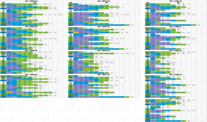 #天空岛传说 #天空岛传说岛屿创作大赛 花了很久终于把钓鱼图鉴摸出来了,简单唠叨两句首先,目前有三个鱼场,森林浅滩(以下简称一图),滨海沙滩(二图),冰上窟窿(三图),一图初始解锁,二图十级钓鱼等级解锁,三图二十级解锁,每个图都有晴阴雾雨四个天气,三图有额外的雪天(一二图没看见过,推测为三图专属,但是不确定)天气每六小时改变一次,每日0点、6点、12点、18点刷新,有概率不变,所以有时候不变
