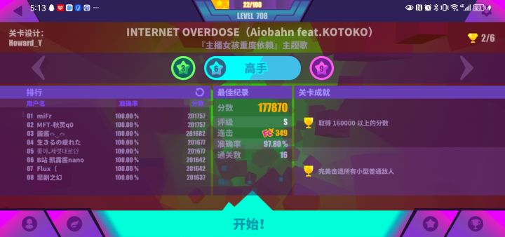 #游戏界劳模 这次9级在发布这个视频时已经打一遍了,使用的是阿米娅,但是我的手因为这个曲子变得生疼,就在血量低于30时,我放弃了,认为它是b级,结果是a,视频我没录,所以我录了第二次,用制服少女#Muse Dash 喵斯快跑