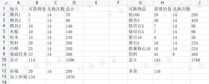 方案1到4需完成每日任务(祈福自选)方案5只需每天祈福10次,就可换能量核心,坚持可换14个。