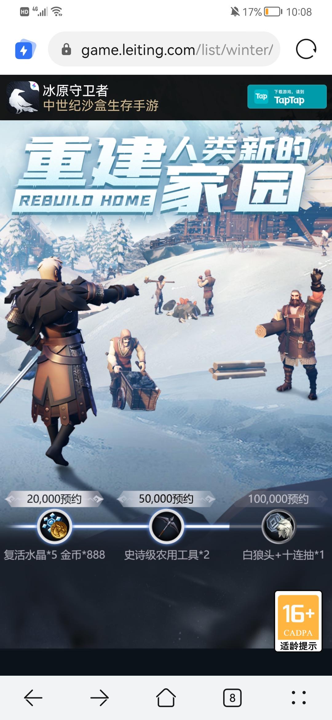 想问下 这个预约奖励你们发了吗点我加入生存者营地,赢取限定中世纪欧式装扮!https://acts.leiting.com/winter/202109/video/?inviteId=002SU53