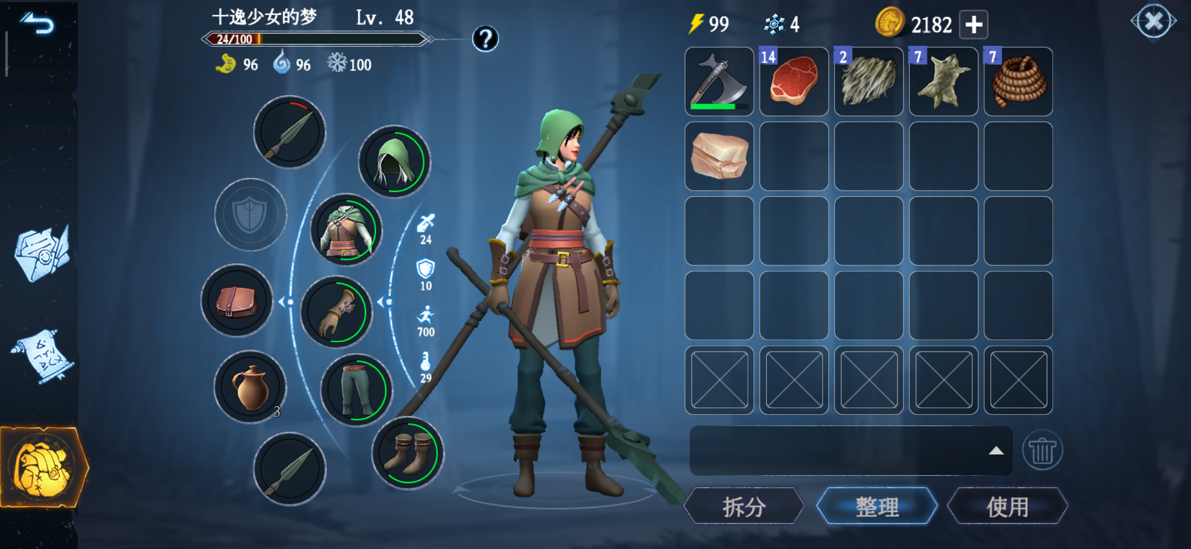 没资源造武器,资源全拿去造武器了,因为耐久太低了一次性造了五把弯刀,带三把身上,穿上板甲出门,图都还没打一半呢板甲爆了,赶紧逃命还是被飞过屏幕的普攻秒杀,还有超出屏幕的怪不会回去吗老追着我,它都看不见我了还咬着我。武器耐久低防具耐久低,我可以忍受,哪怕连掉五把弯刀也不眨眼(后来学乖了好装备进能捡尸点地图),就是特么石斧60耐久,铁斧也60耐久,这是豆腐坐等么?绝对故意的。为什么从石器时代发展到铁器