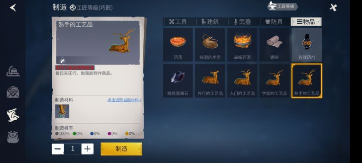 我这个已经不加熟练度了,怎么解锁巧匠的工艺品呀