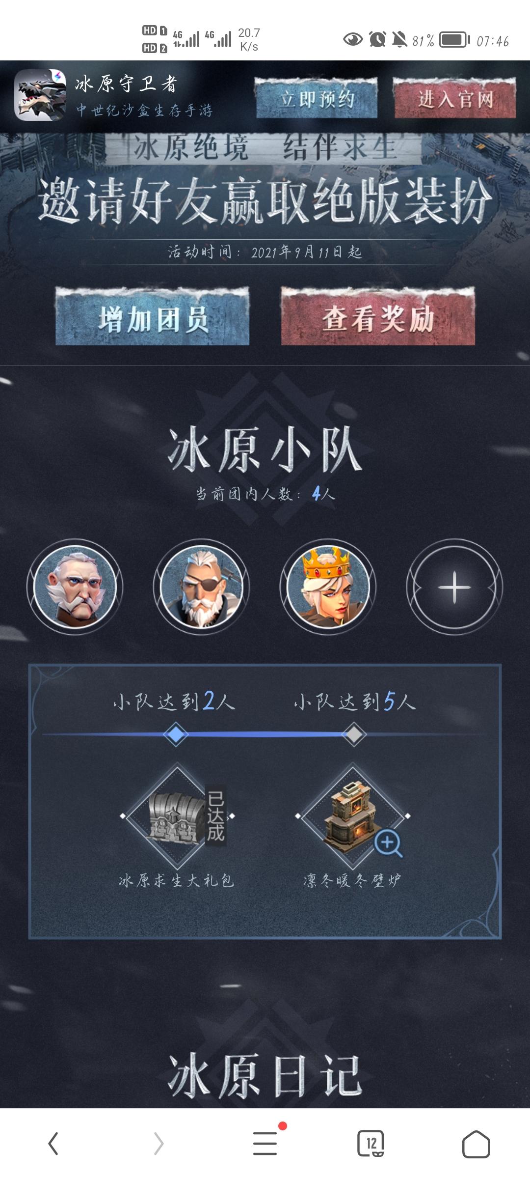 差一个队友点我加入生存者营地,赢取限定中世纪欧式装扮!https://acts.leiting.com/winter/202109/video/?inviteId=002SR7N
