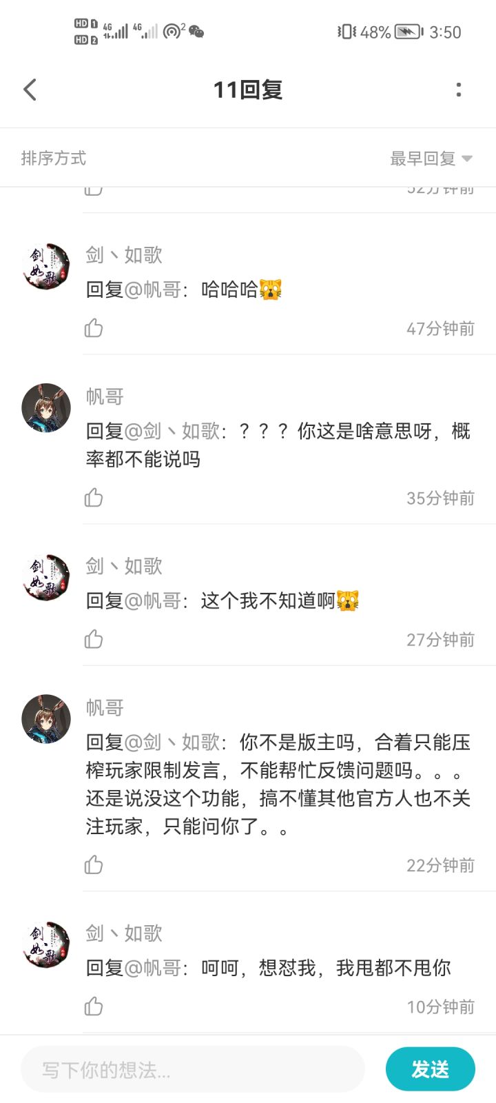 不回答我的问题说我怼他。。。玩家真的成弱势群体了。还有,但凡有个发声回音,我都不会找着这个代表不了官方的人问,真的心累