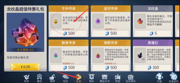 3.商店购买:1周(周一至周日)可以买3个。(建议生命龙,骨龙都买)
