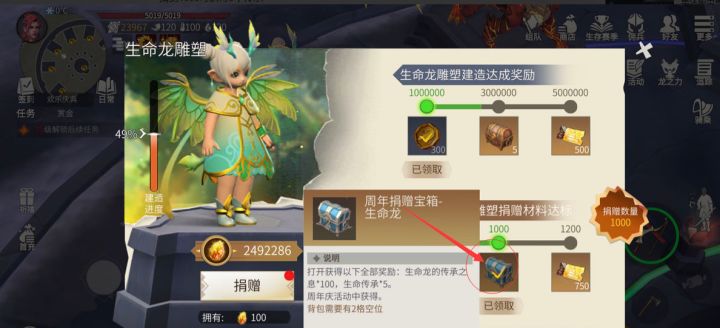 2.周年庆活动,捐生命龙1200票(不要溢出,每条龙捐1200票就好)。5个