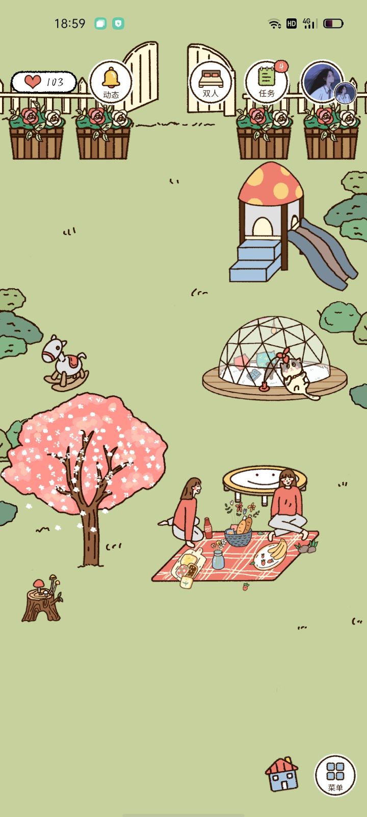 我有一个想法下面这两张图是游戏卡普喔的截图,我和朋友可以绑定账号,共同打理一个更大的房子。我觉得老农也可以出共享山头的机制,相应的,山头也会更大,两个人玩也会有更多的意思。(比如一个人很忙,另一个人还可以空出手给树续缘,不至于出现离线两个星期山头秃死😥的惨状;两个人也可以共同讨论怎么布置山头😮)