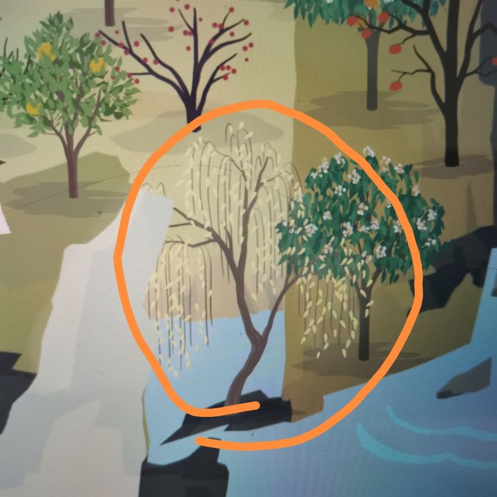 开始就像在这个位置种一颗垂条的树,但是在图鉴里没看到,今天逛山头的时候发现这位山友种了诶